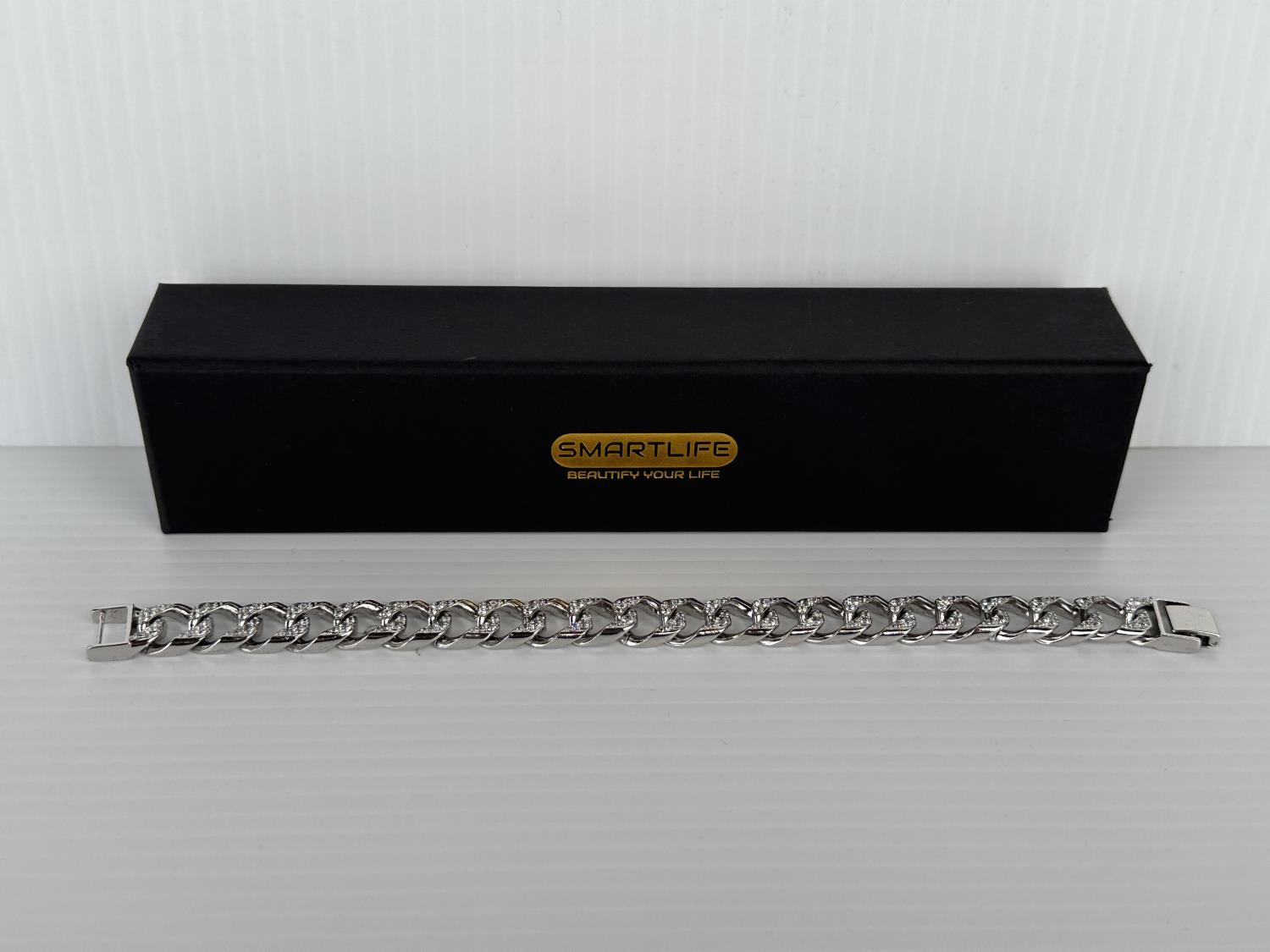 1368 Smartlife Platinum Plated 13.0 mm Iced Out Cuban Link Bracelet (Unused)