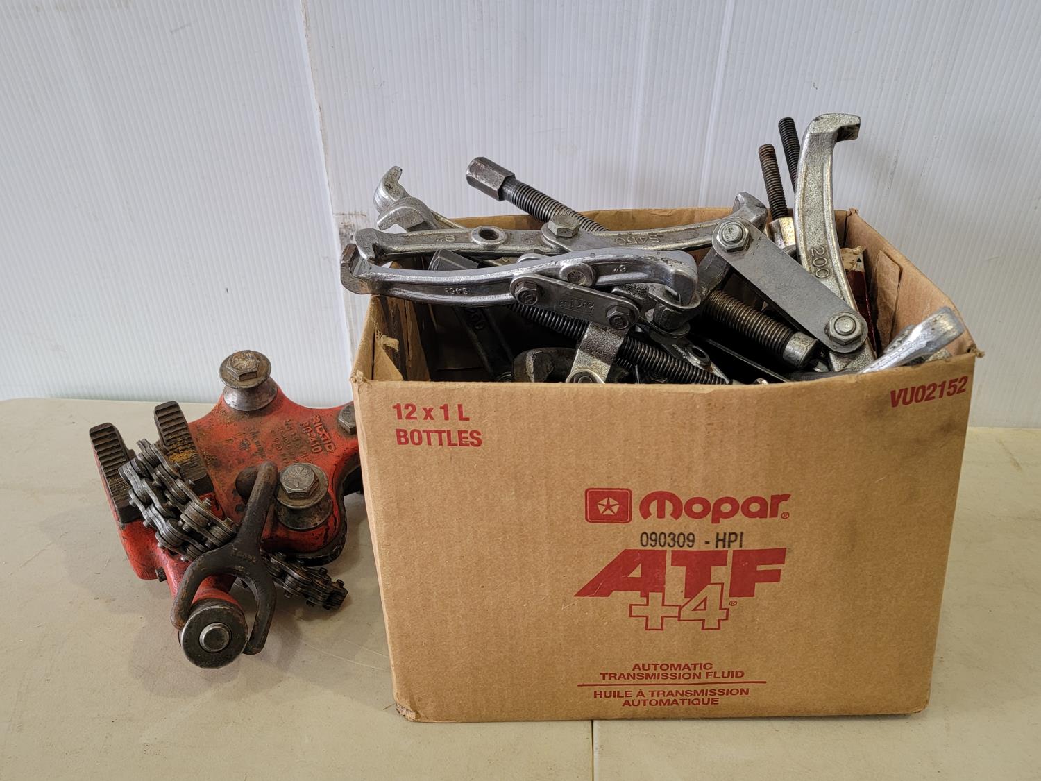1248 Qty of Gear Pullers and Ridgid BC-410 Chain Vise