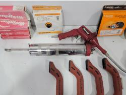 Tempilstik temperature indicators, foil tape, sanding belts, Powermate air grease gun