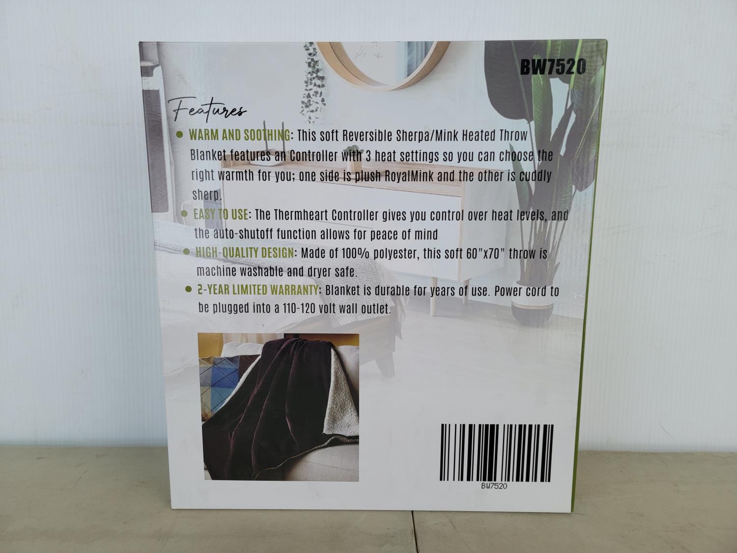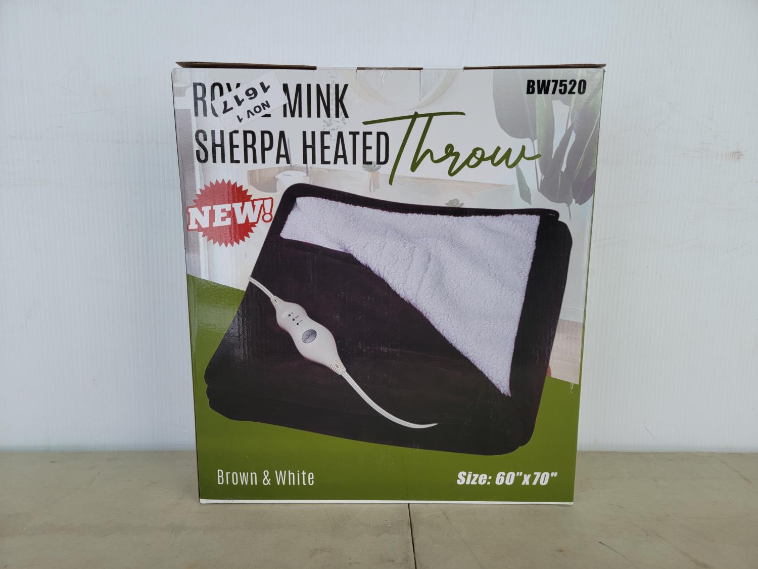 1162 Royal Mink Sherpa Heated Throw (Unused)