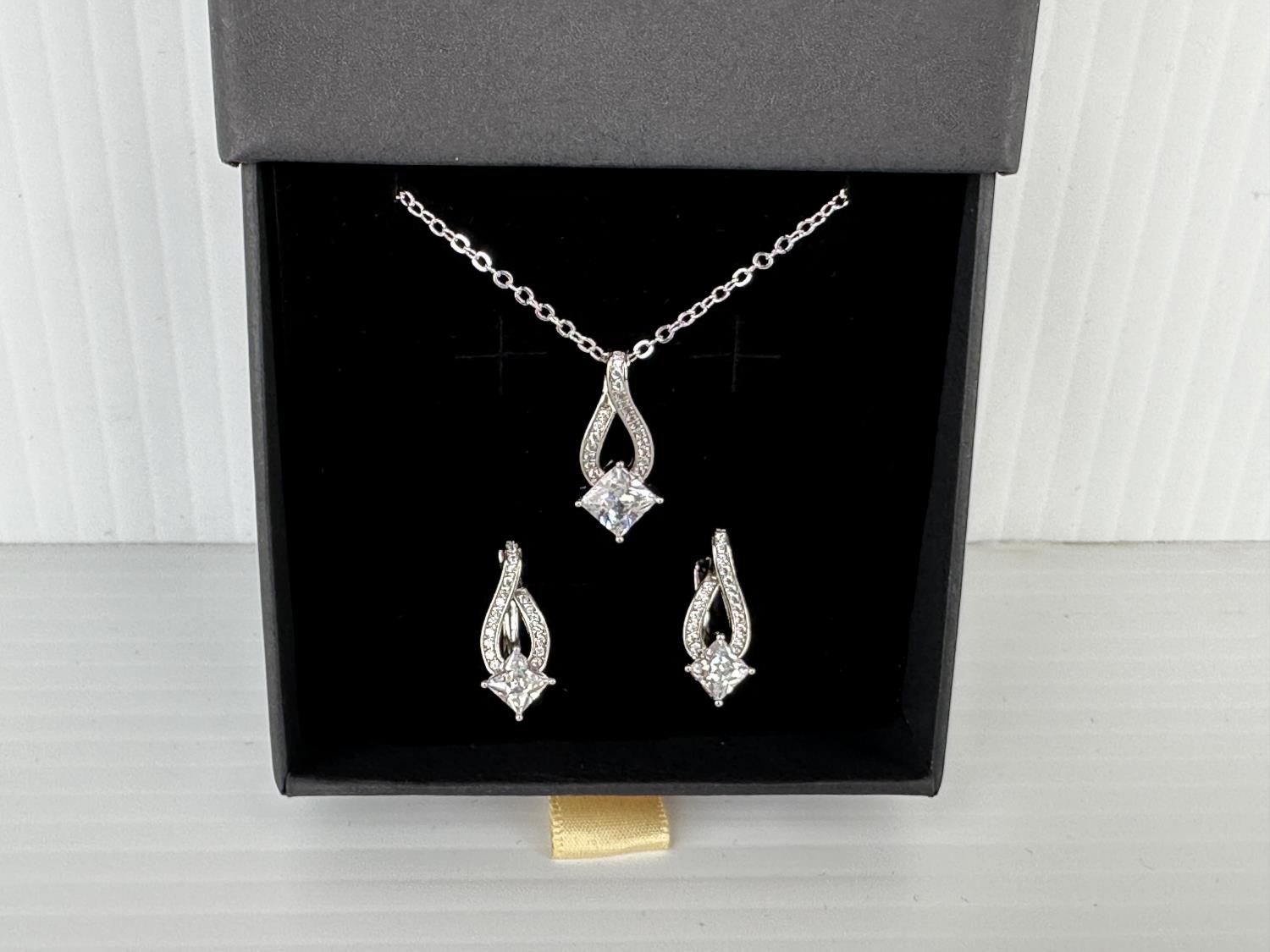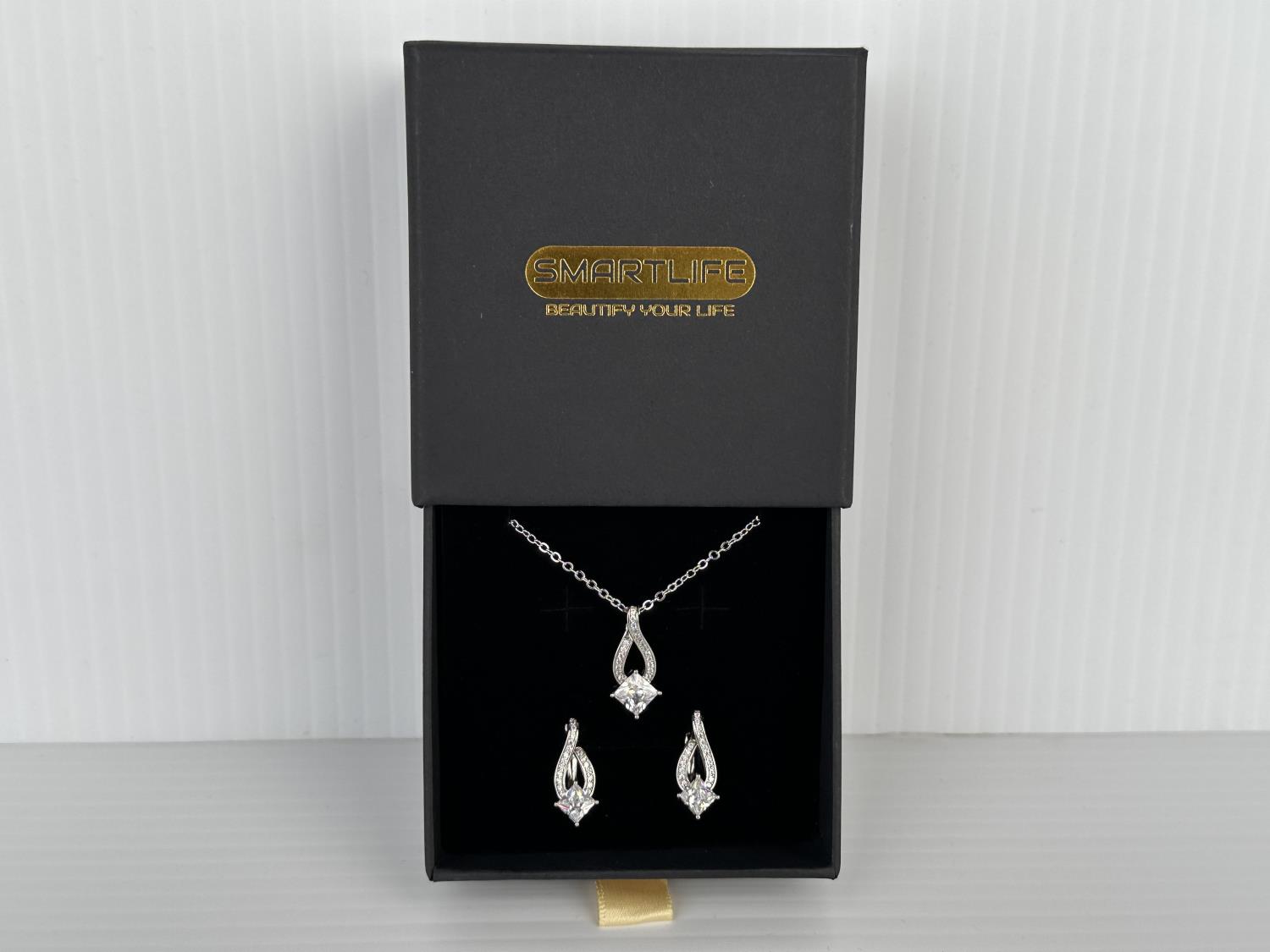 1365 Smartlife Platinum Plated 1.25 Ct Princess Cut 2 Piece Set (Unused)