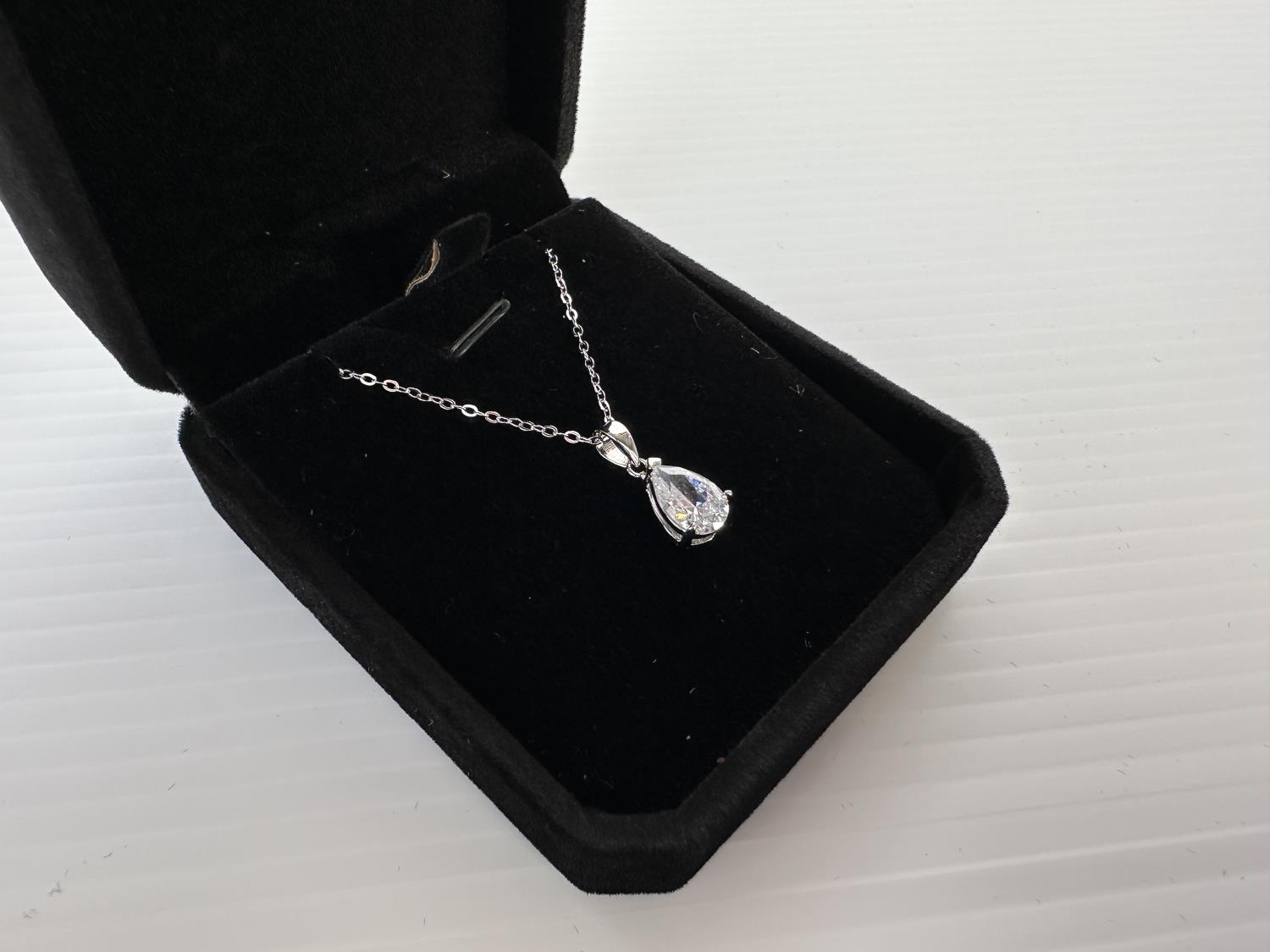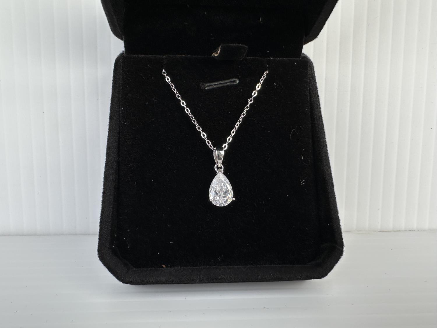 1355 Smartlife Sterling Silver 2.0 Ct Simulated Diamond Pear Cut Necklace (Unused)