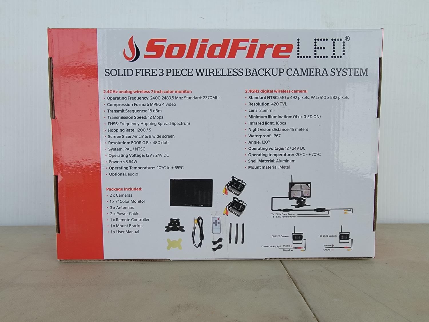1166 Solidfire LED 3 Piece Wireless Backup Camera System (Unused)