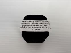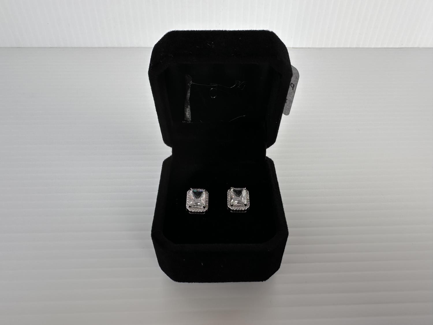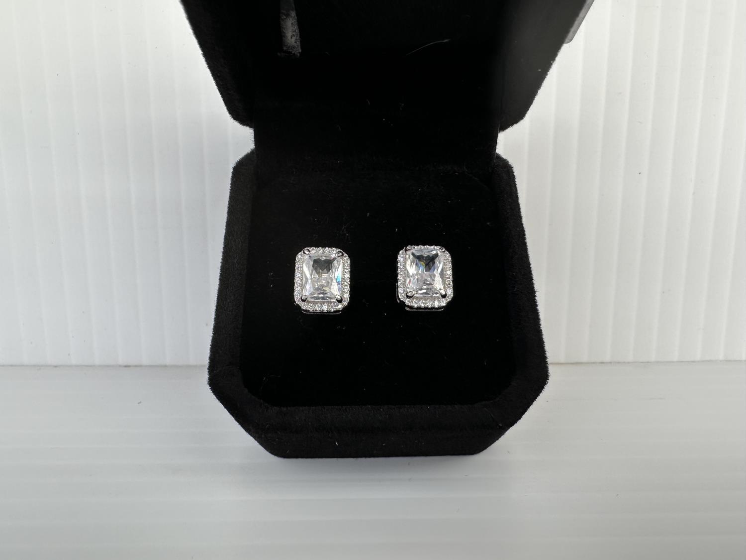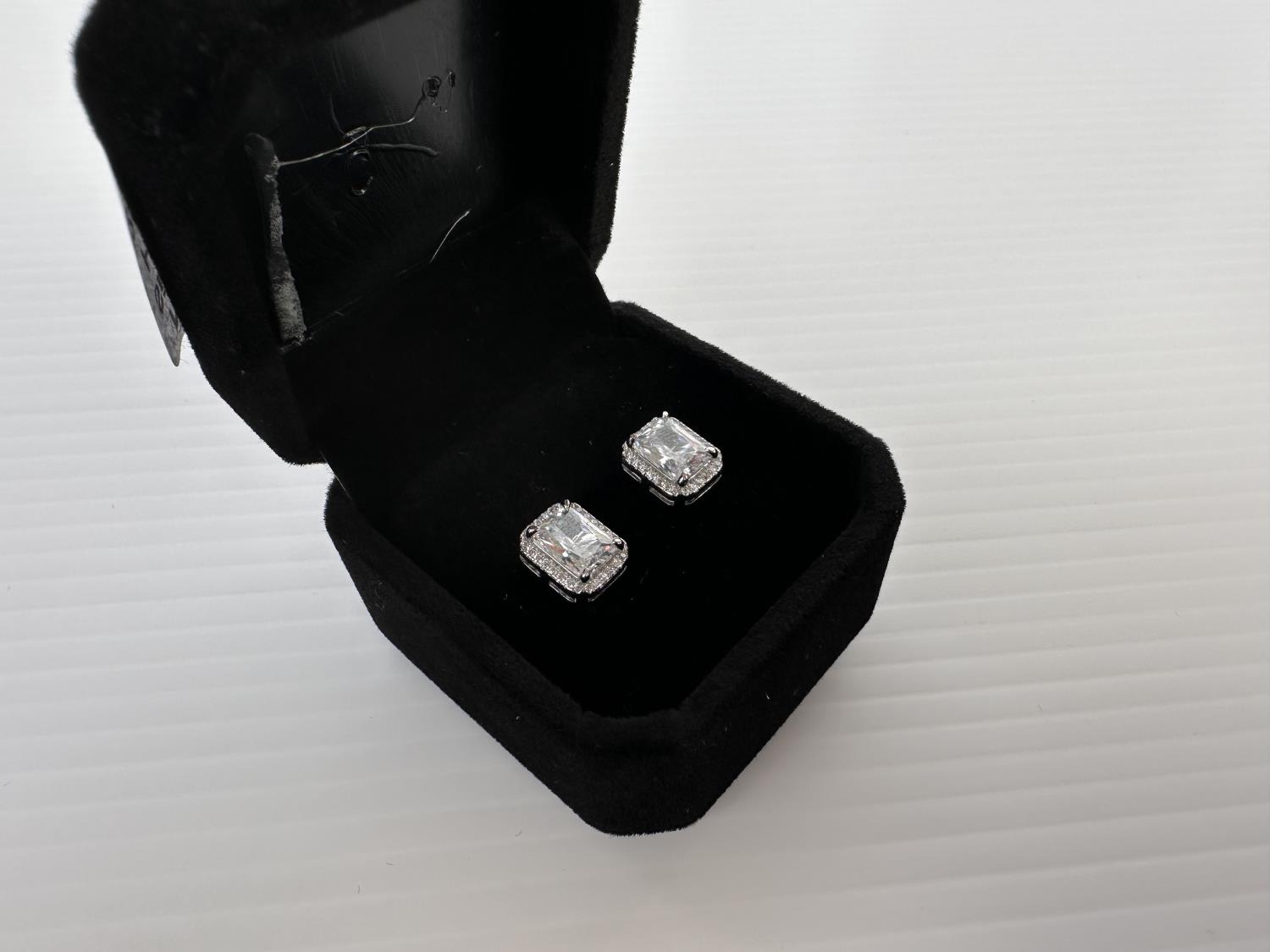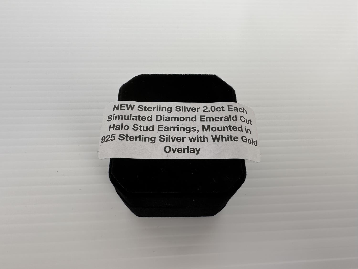 1350 Smartlife Sterling Silver 2.0 Ct Each Simulated Diamond Emerald Cut Halo Stud Earrings (Unused)