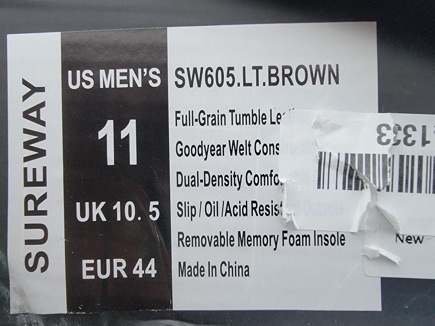 1283 Sureway Leather Boots with Inserts - Men's Size 11 (Unused)