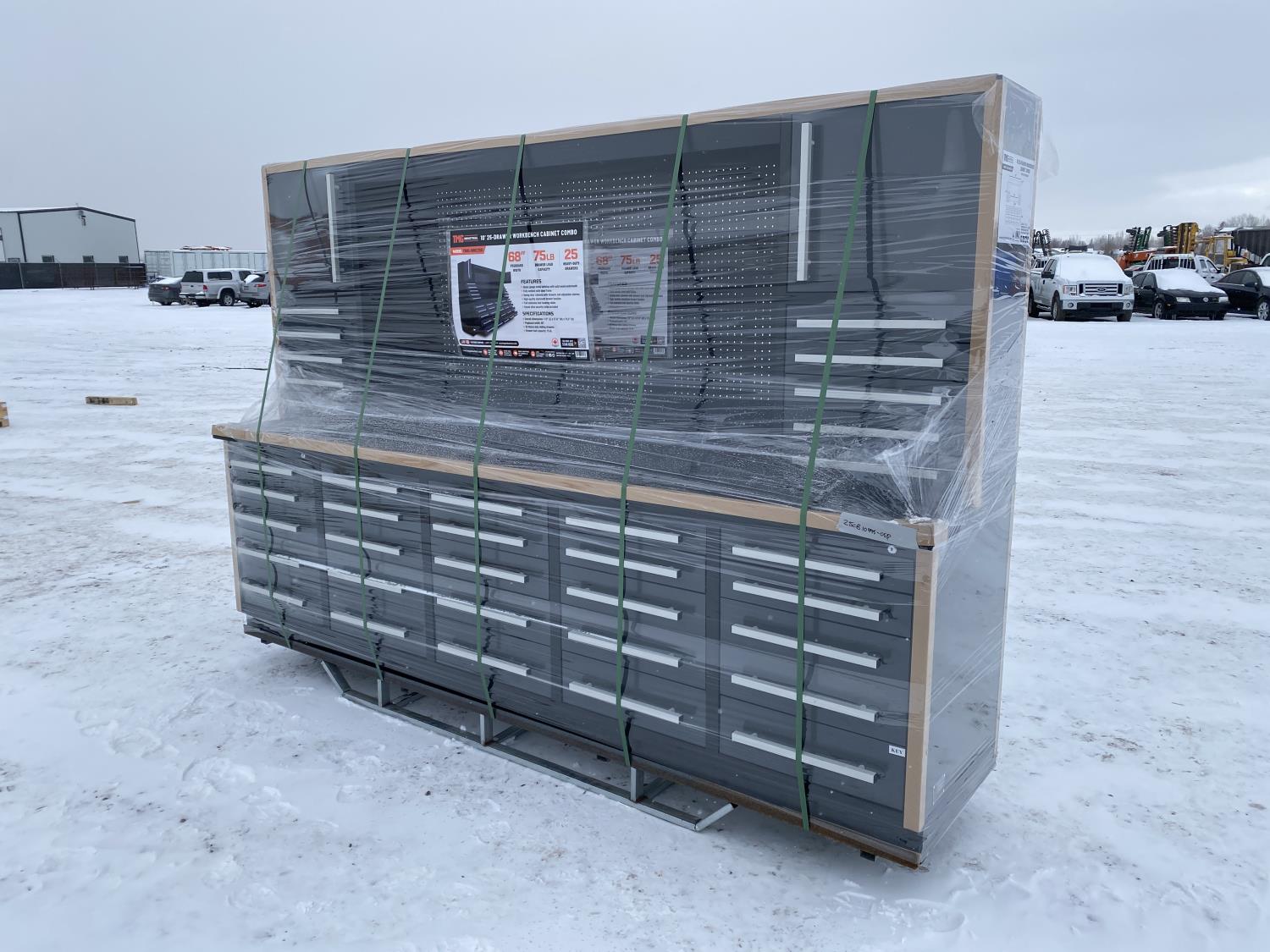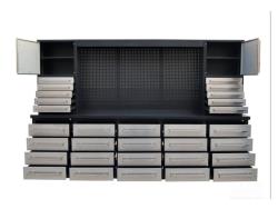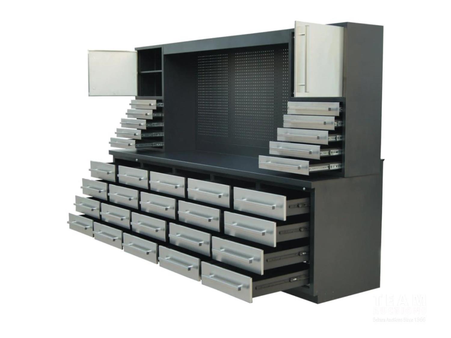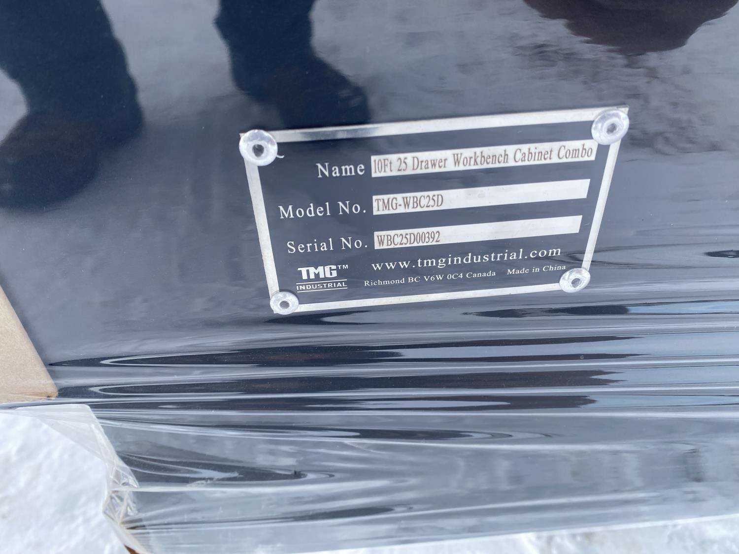 107 TMG Industrial WBC25D 10 Ft 25 Drawer Workbench Cabinet Combo with 68 Inch Pegboard (Unused)