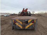 V8 gas engine, 5X2 manual transmission, 28 inch x 22 inch x 19 inch steel tool boxes, 8 ft x 9 ft 10 inch deck, SKB 40008K2 3 section 20 ft knuckle front mount crane, outriggers, spring suspension, 187 inch WB, 10.00-20 tires