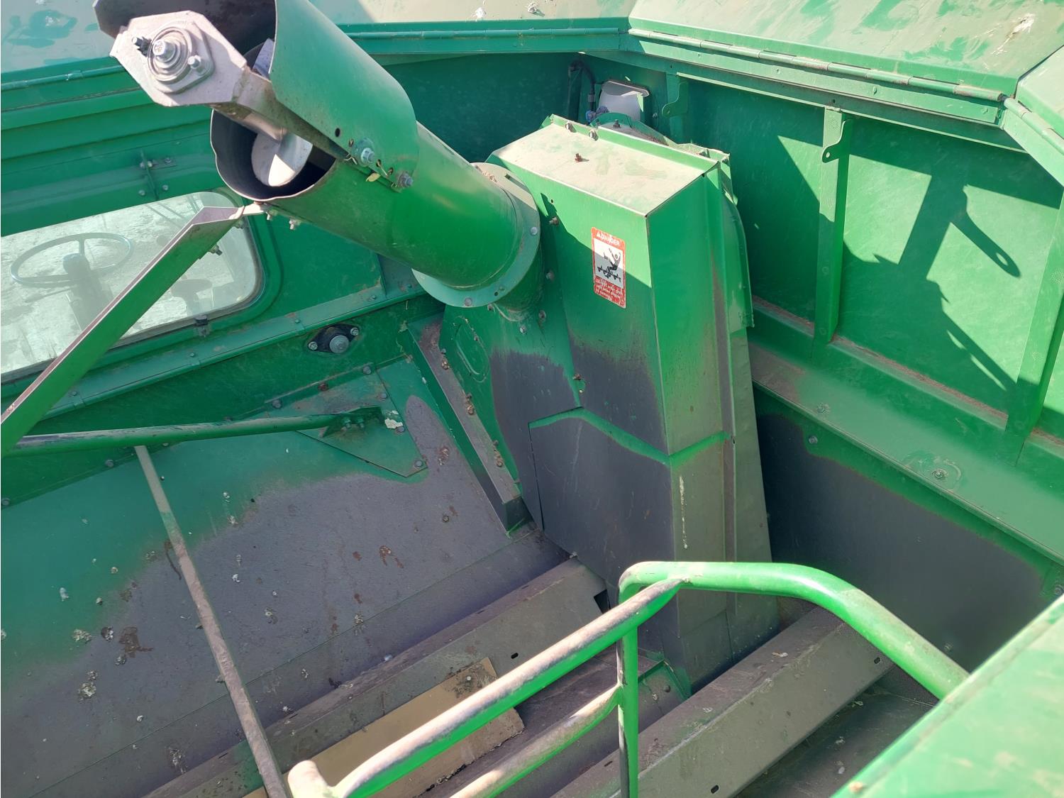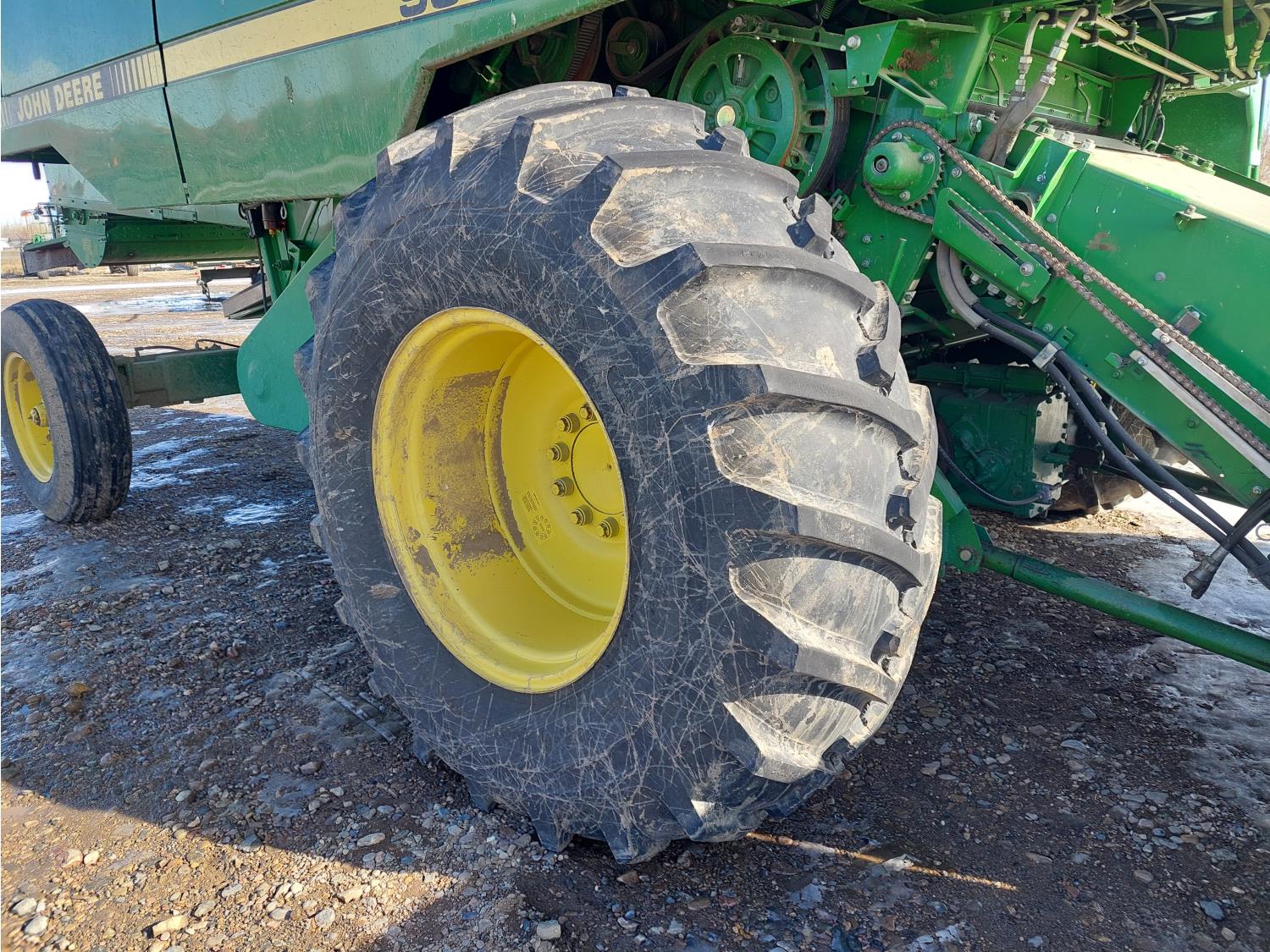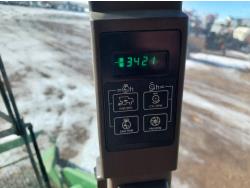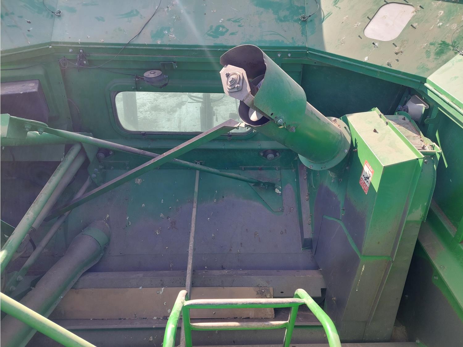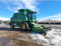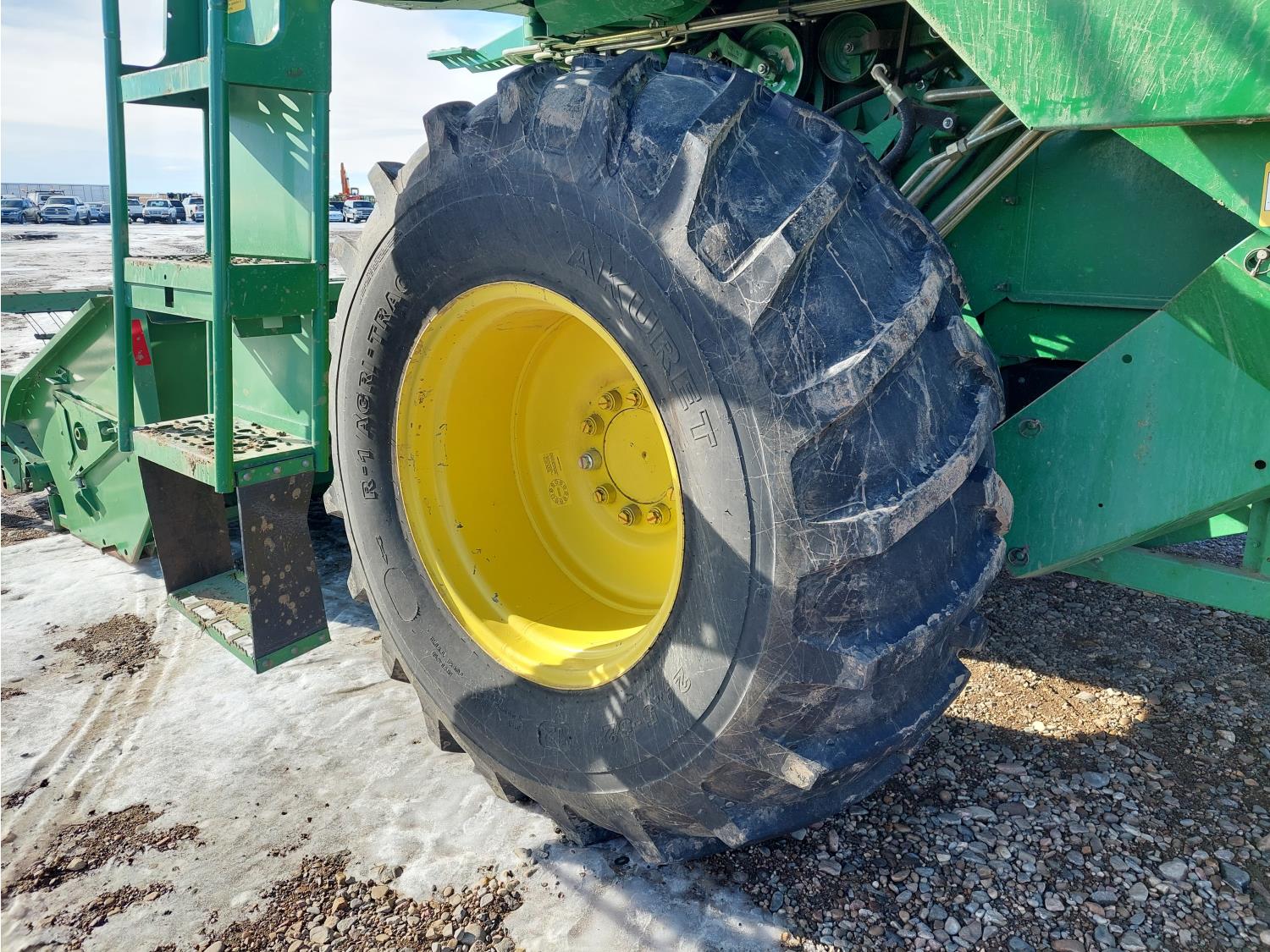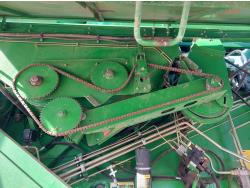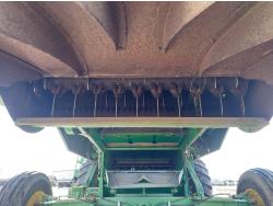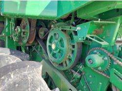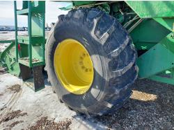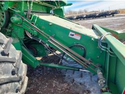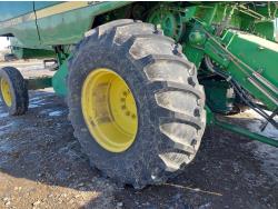 John Deere pick-up header, variable speed reel, auto header height, reverser, rock trap, chopper, 30 ft auger, Big Top grain tank extensions, slow down kit for beans , A/C, radio, air ride seat, buddy seat, 24.5-32 front tires, 11.25-24 rear tires