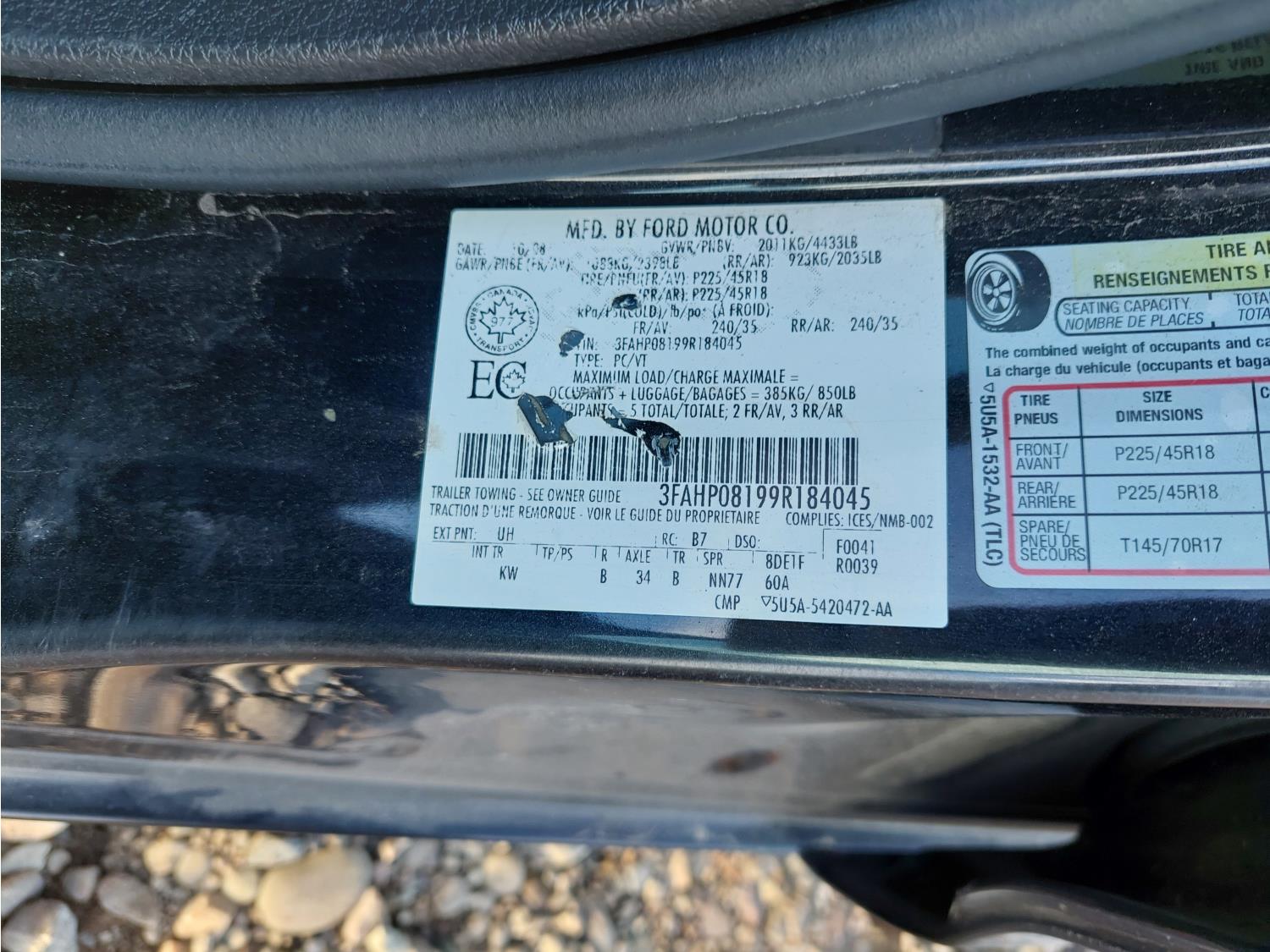 3.0 L, V6, automatic transmission, P/W, P/L, A/C, heated mirrors, 225/45R18 tires