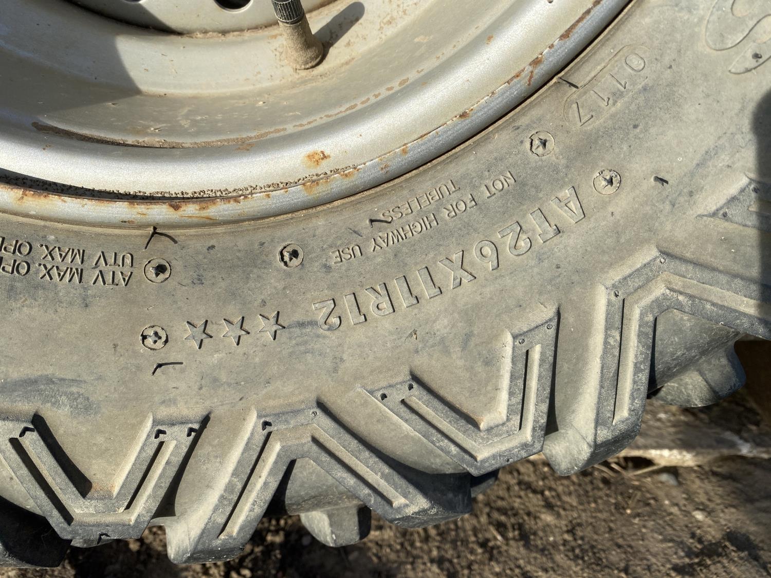 475 cc engine, automatic transmission, electric shift, reverse, front and rear racks, 26X9.00R12 front tires, 26X11R12 rear tires
