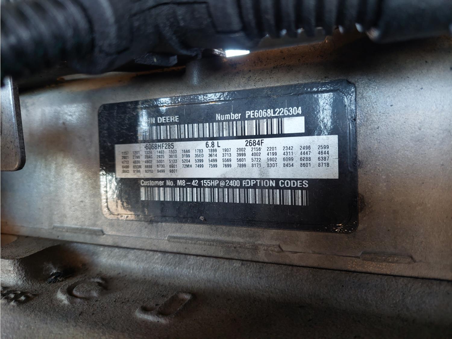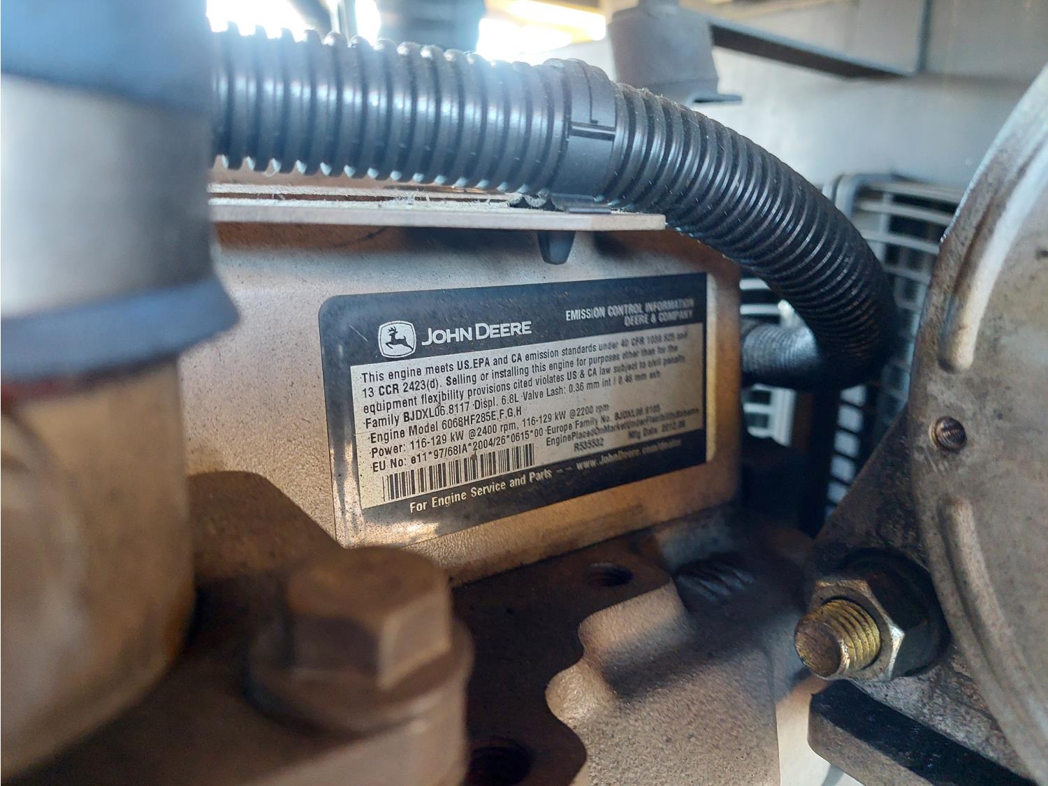 6.8L John Deere 6068HF 6 cylinder diesel engine, (2) 12 inch socks, 235/80R16 tires