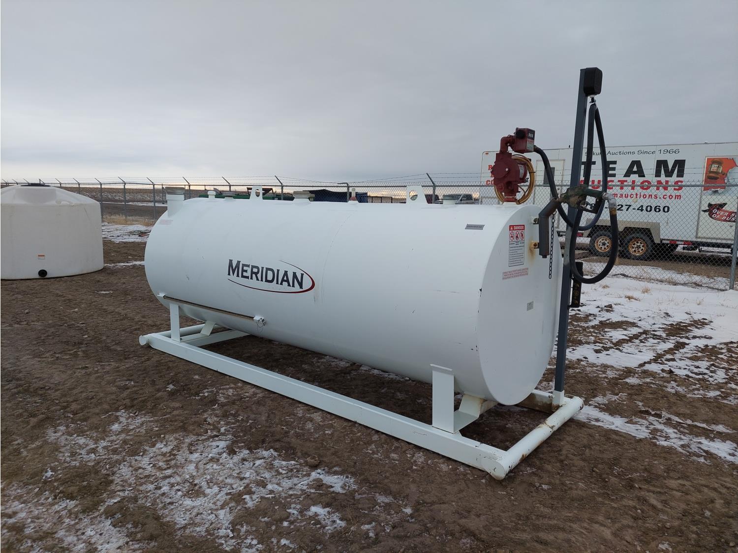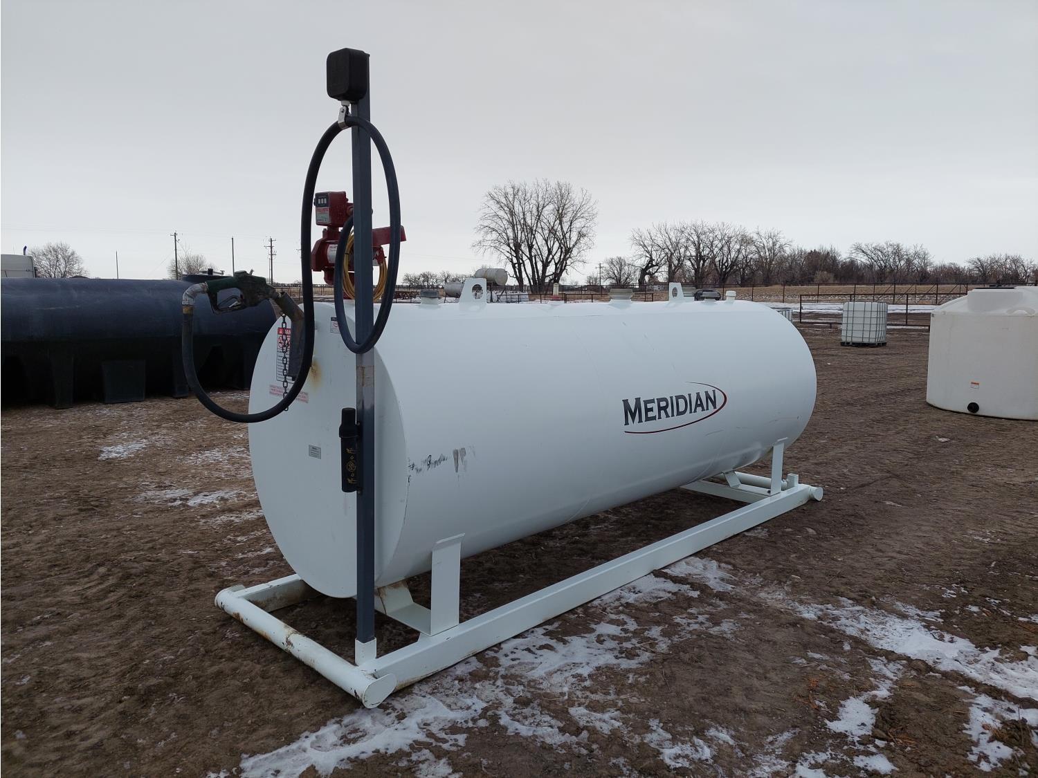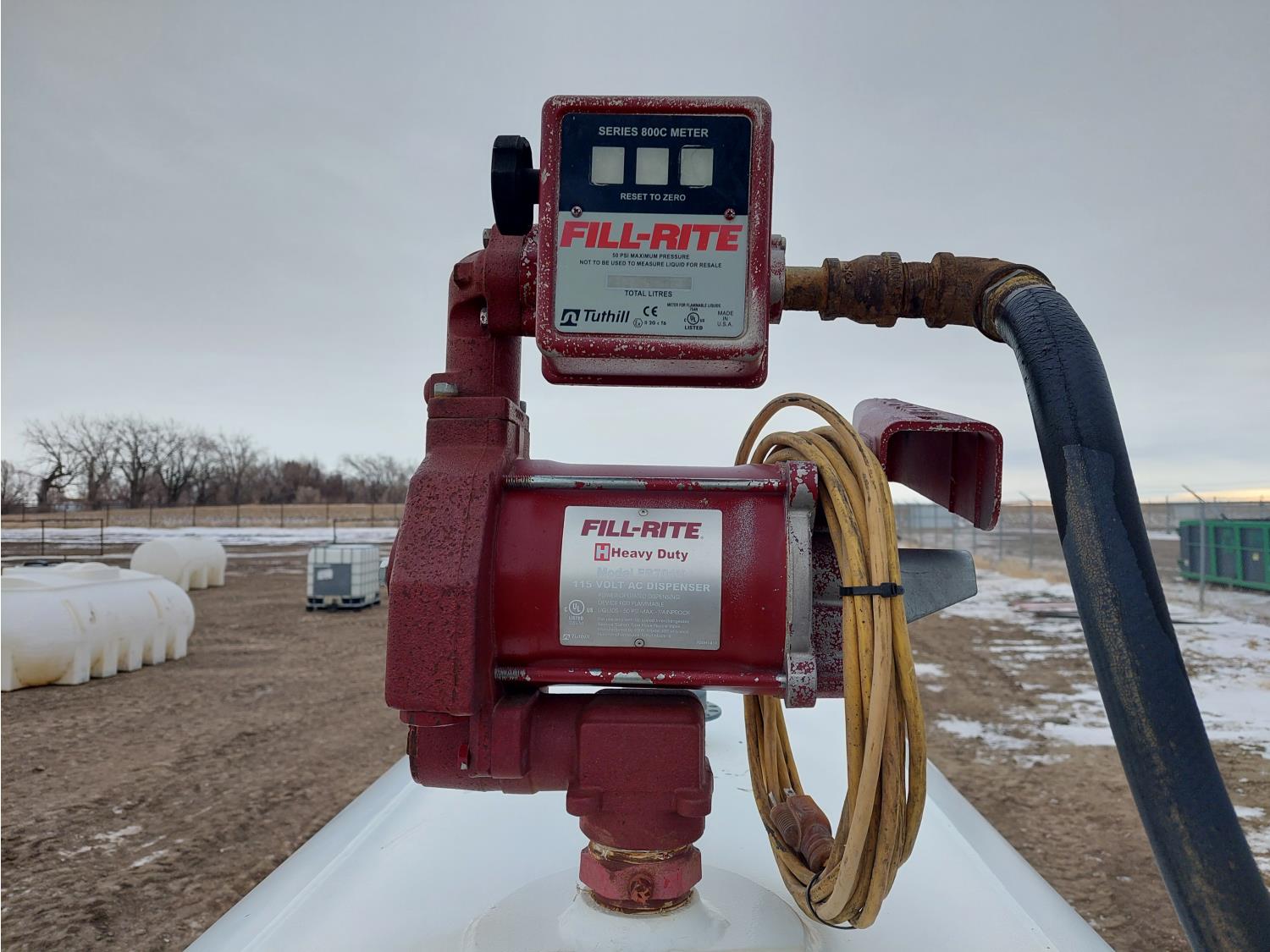4600 liter capacity, Fill-Rite FR701V 115V fuel pump, Fill-Rite 800C meter, 144 inch L x 52 inch D tank
