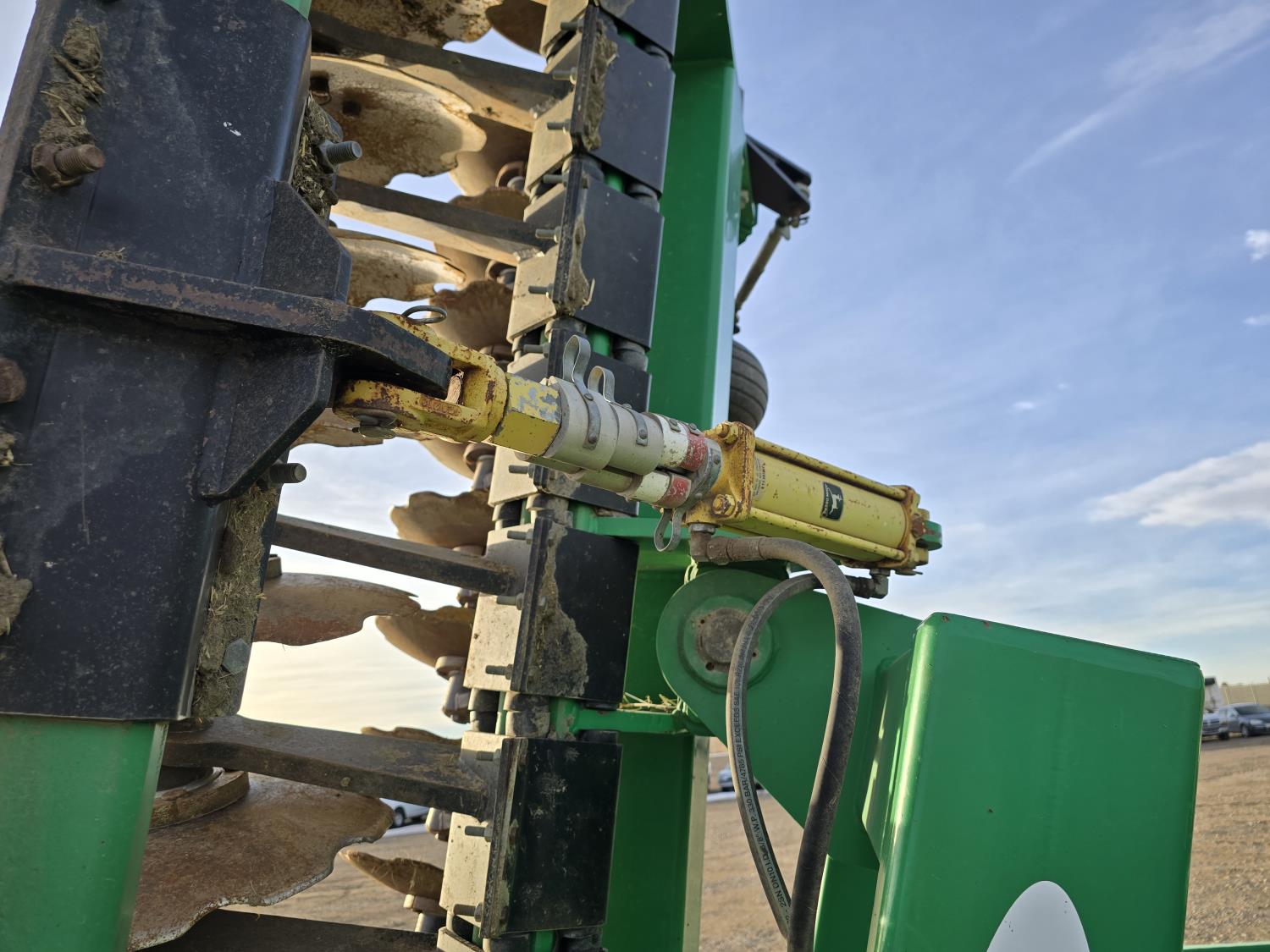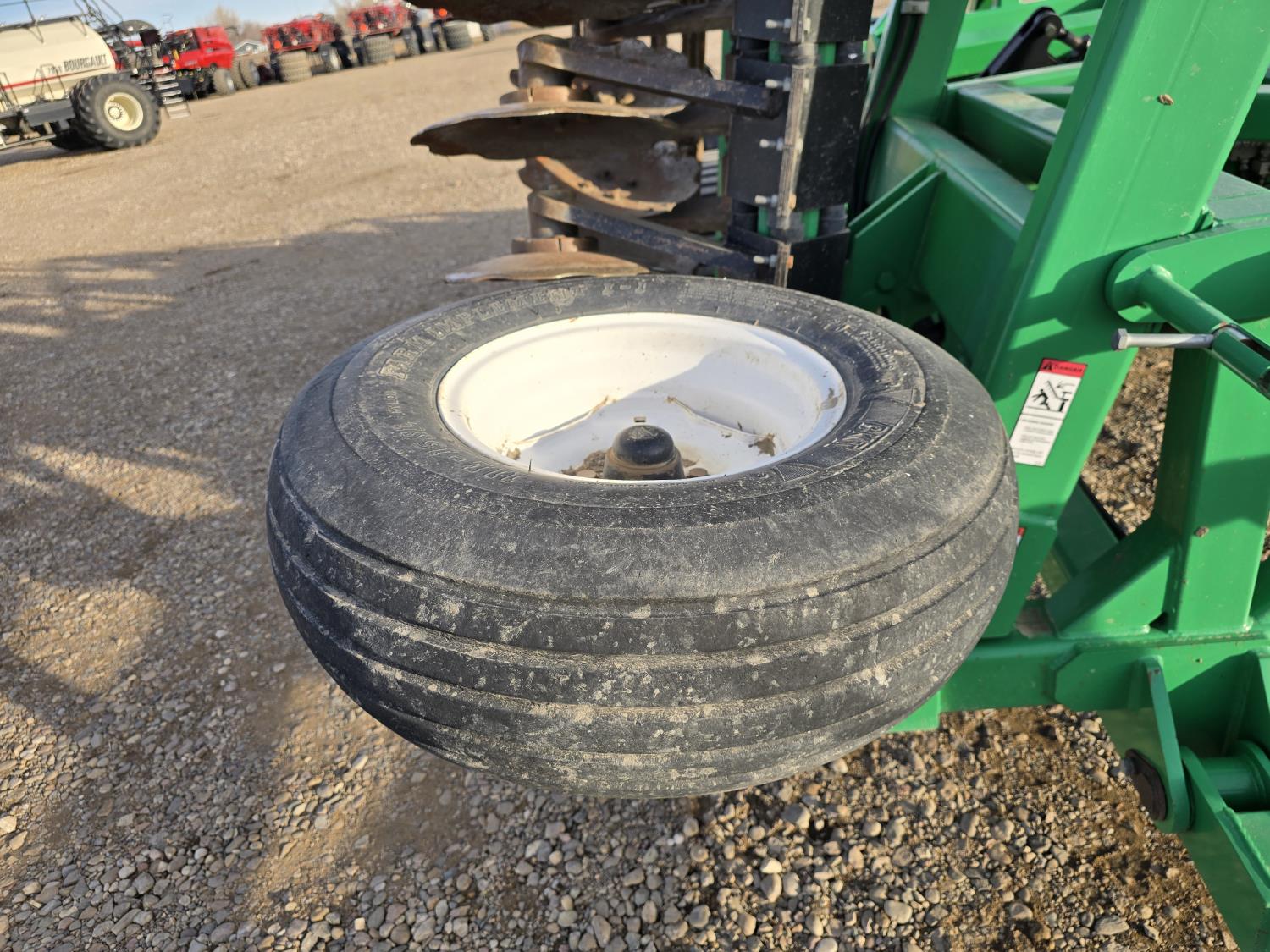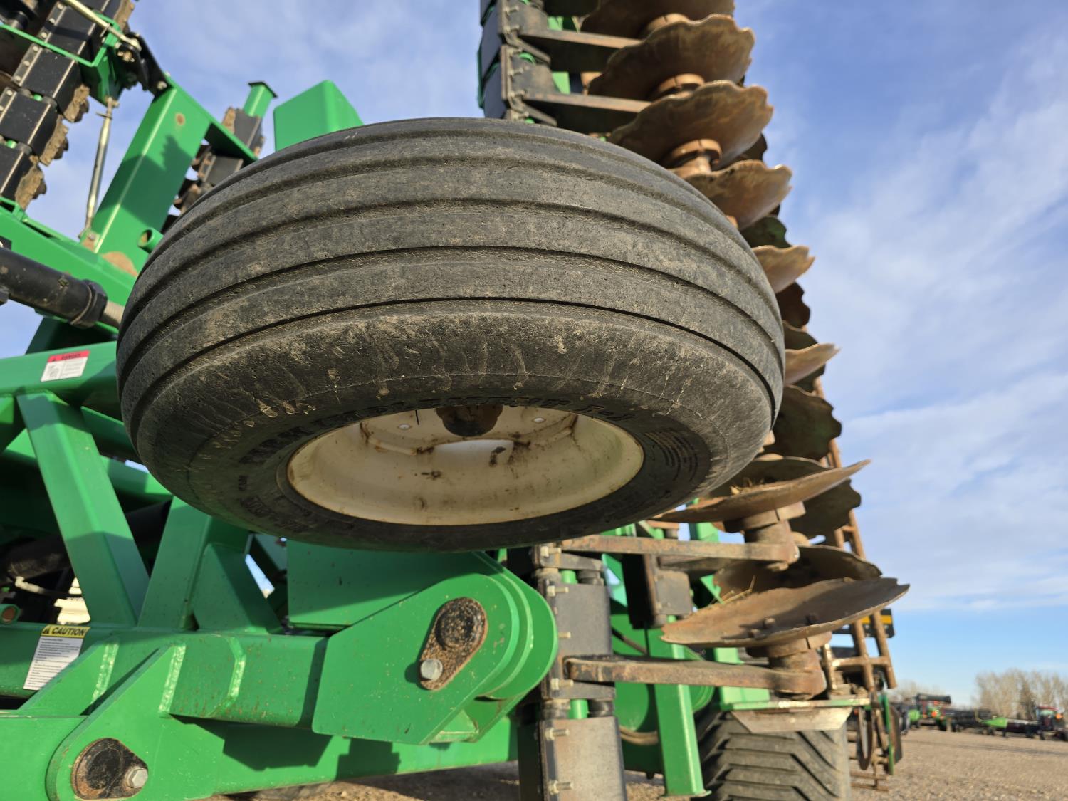 front: 10 inch spacing notched 21.5 inch discs, rear: 10 inch spacing notched 21.5 inch discs, floating hitch, roller cage baskets, duals main frame and wings, 19 inch roller cage baskets, 700/50-22.5 main frame tires, 11L-15SL wing tires