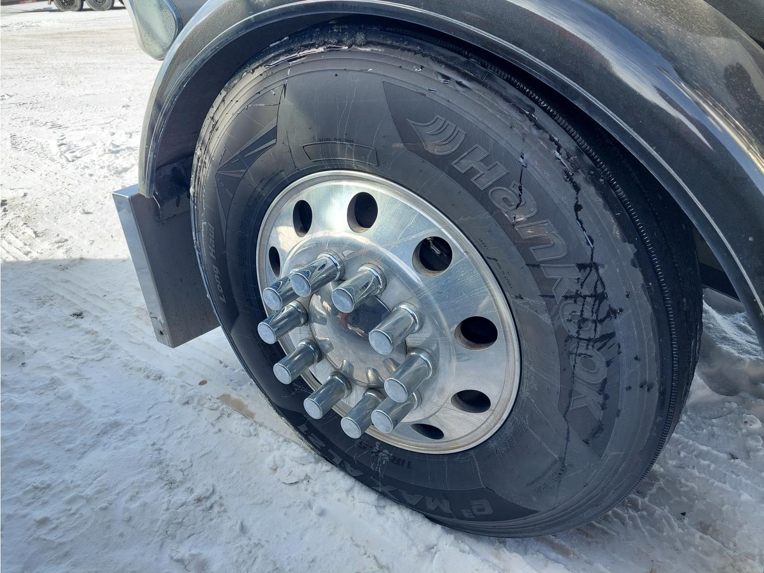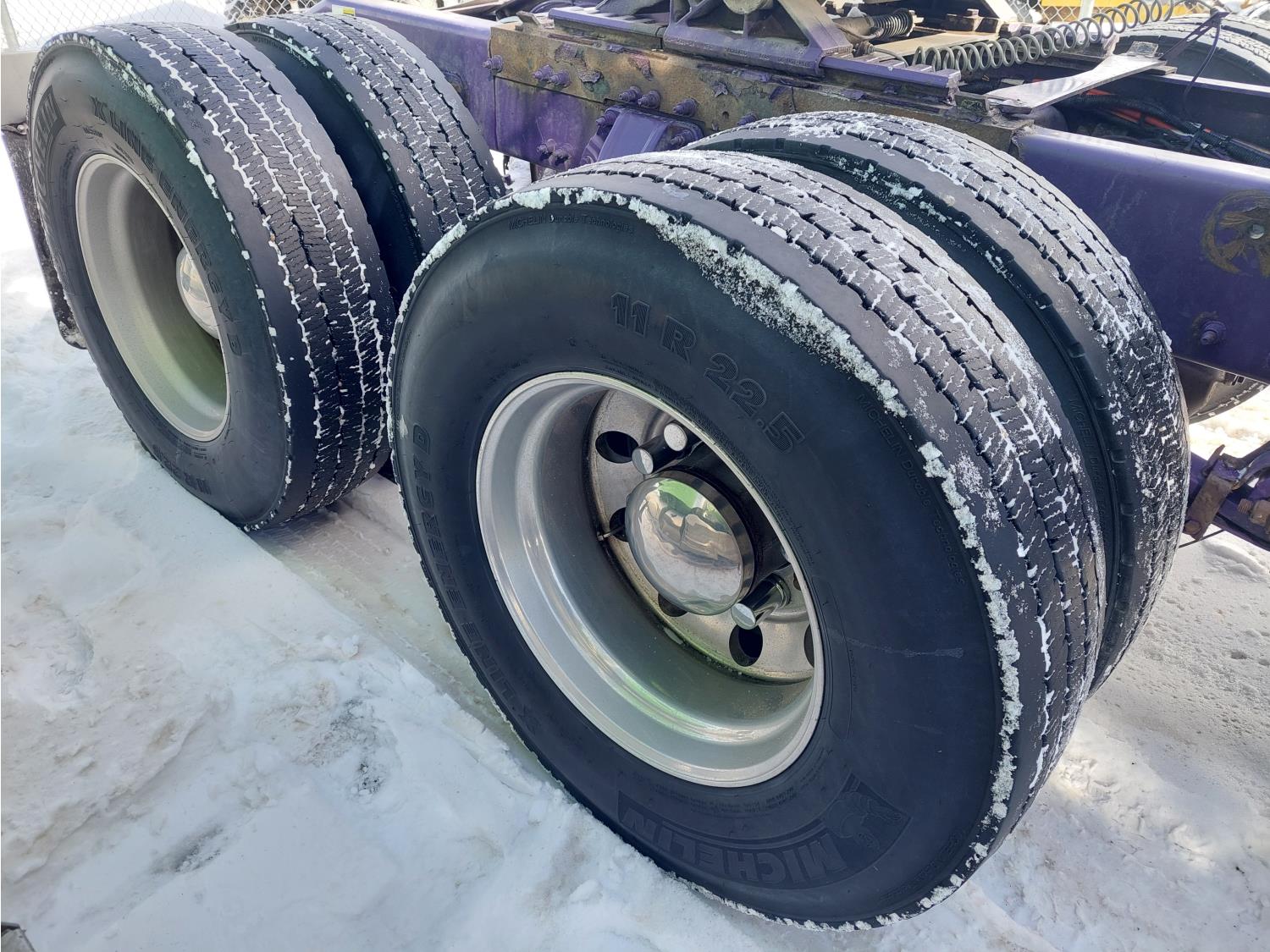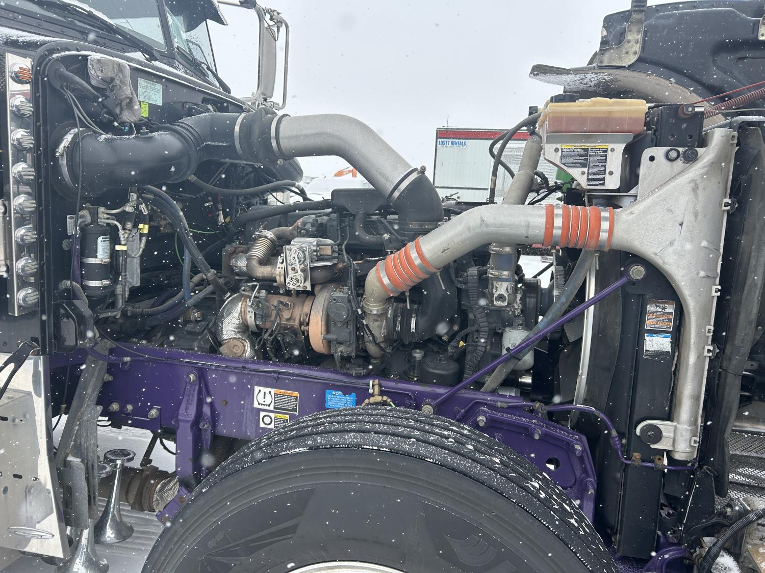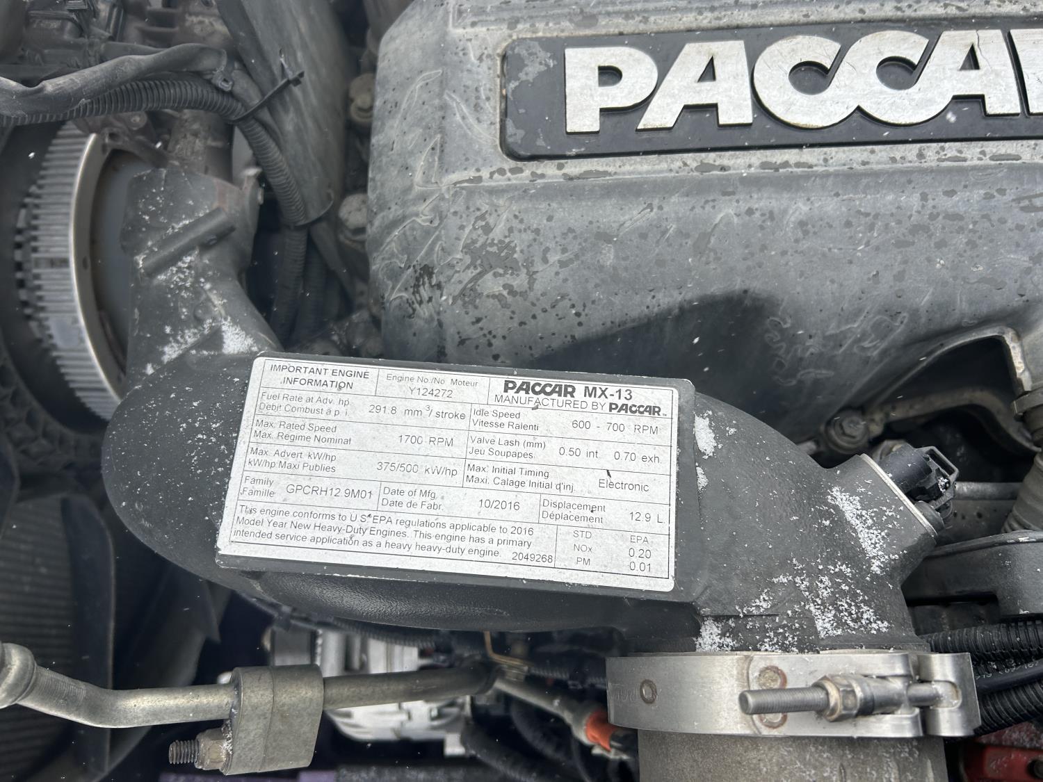 Paccar MX-13 12.9 L 6 cylinder 500 HP engine, engine brake, emissions deleted, Eaton 18 speed manual transmission, Espar cab heater, mid rise sleeper, fridge, A/C, cruise control, air ride seats, CB radio, 2-way radio, stereo, Paccar air ride suspension, 12,500 lb front axle, 40,000 lb rear axles, 3 way diff locks, single frame, all aluminum wheels, 11R22.5 tires
