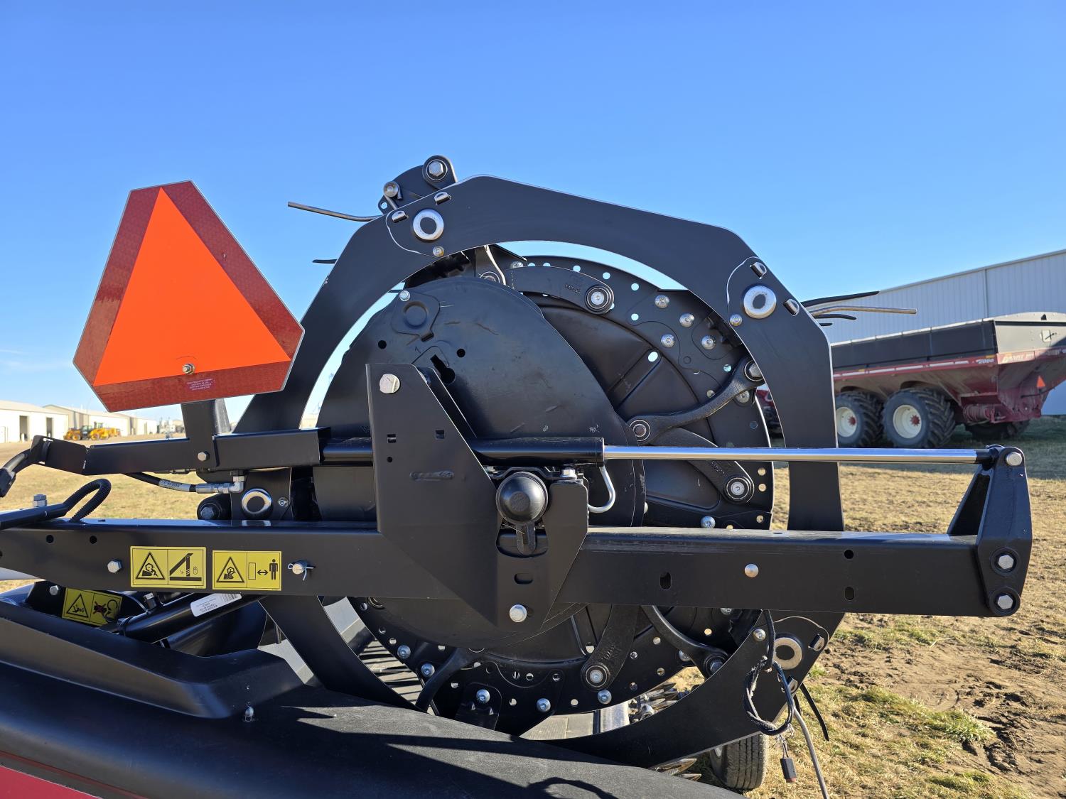 fore & aft, double knife drive, cross auger, poly skid plates, crop dividers, split pickup reels, factory transport, header adapter to fit 2017 Case IH 9240, ST205/75R15 tires