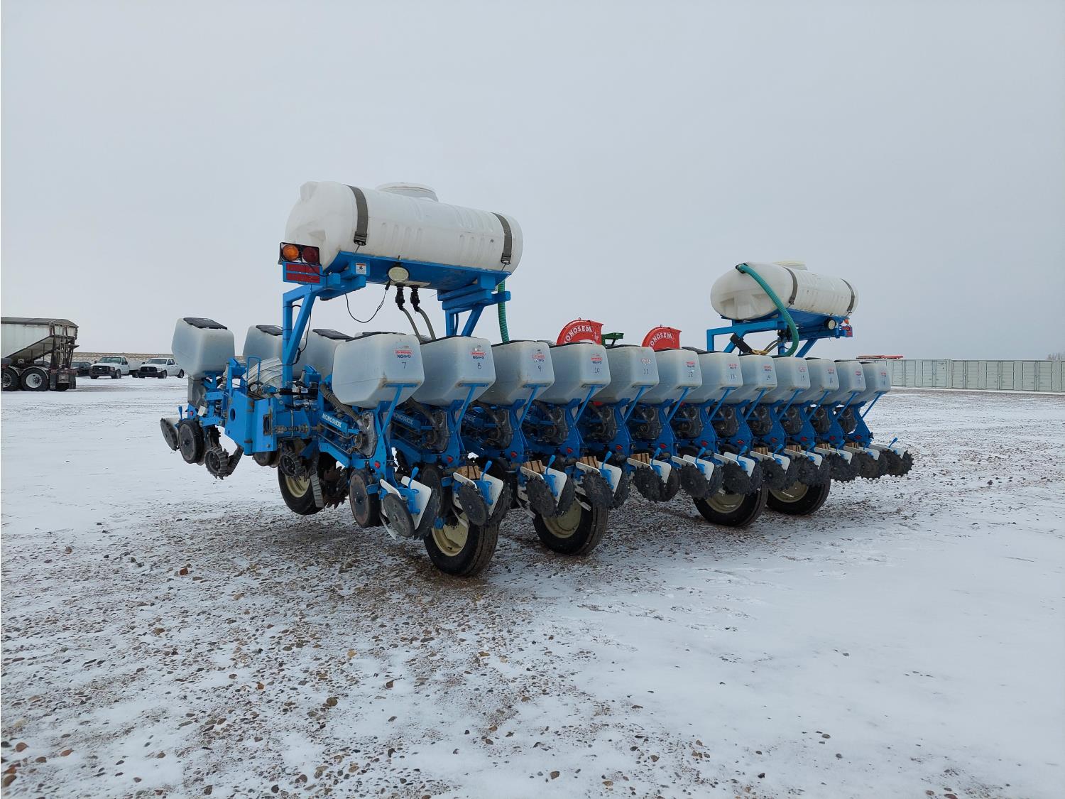 22 inch space, ISO monitoring, traditional low till, 15 to 30 inch inter row spacing, 15 inch double opener discs, 6212A discs installed, 11.5 inch press wheel, double spring with additional pressure spring, 7.50-20SL tires