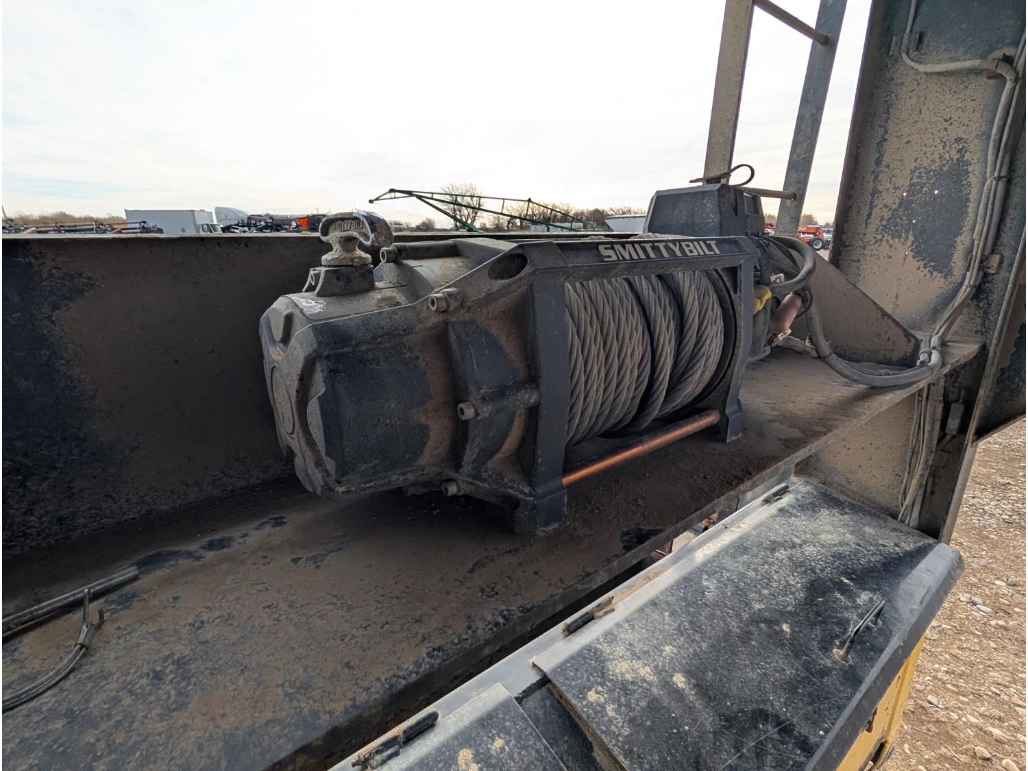 98 inch wide deck, 16 ft tilt deck, 8 ft top deck, wood deck, electric brakes, torsion suspension, Smittybilt X2O 17,500 lb steel cable winch, tool / storage box, rub rails, stake pockets, LED lights, hydraulic tilt controls, 7000 lb axles, 235/80R16 tires