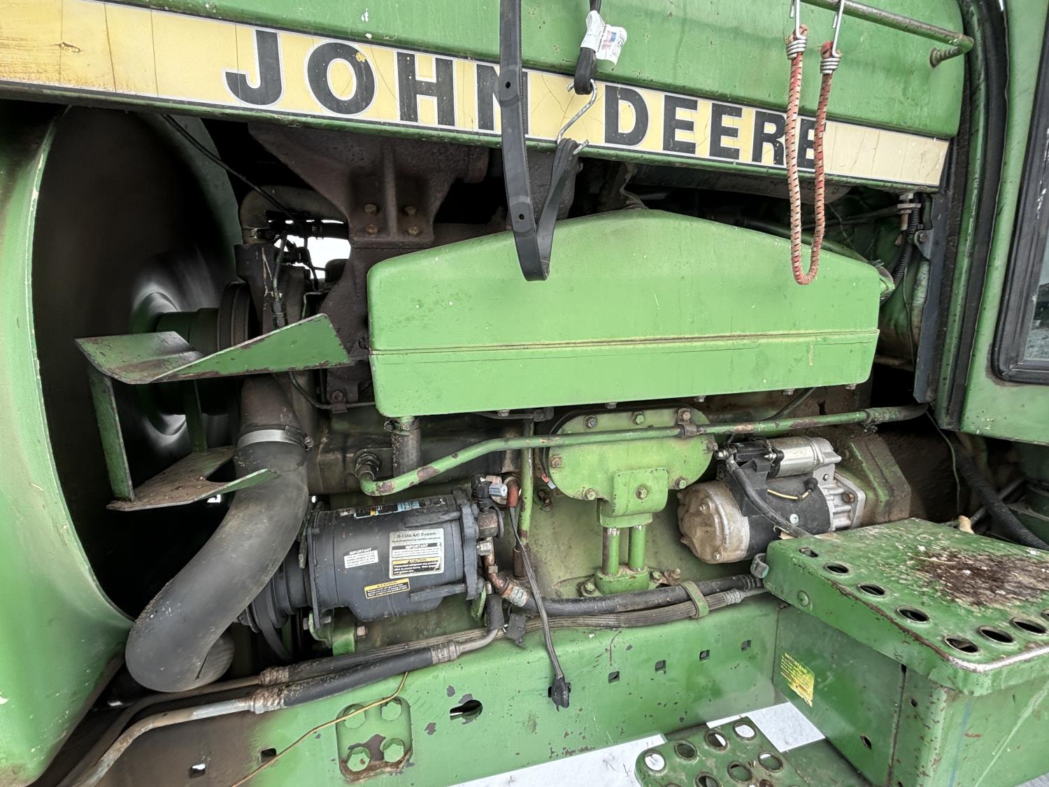 John Deere 7.6 L 6 cylinder 172 HP, diesel engine, 155 PTO HP, 8 speed power shift transmission, 23 GPM hydraulic pump, cab, ROPS, A/C, radio, Big 1000 PTO, 3 rear hydraulic outlets, rear wheel weights, 11.00-16 front tires, 18.4-38 rear tires, factory duals