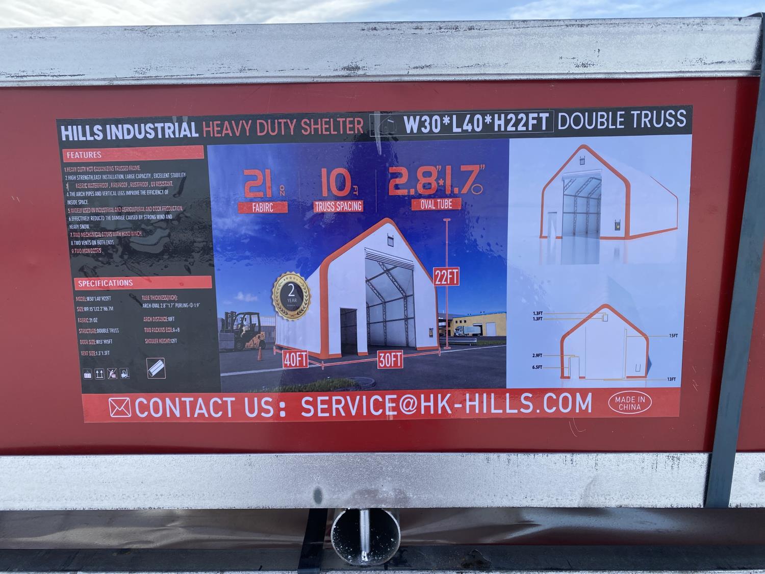 79 2024 Hills Industrial 30 Ft W X 40 Ft L X 22 Ft H Heavy Duty Shelter (Unused)