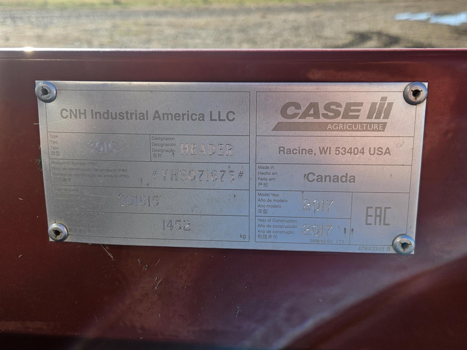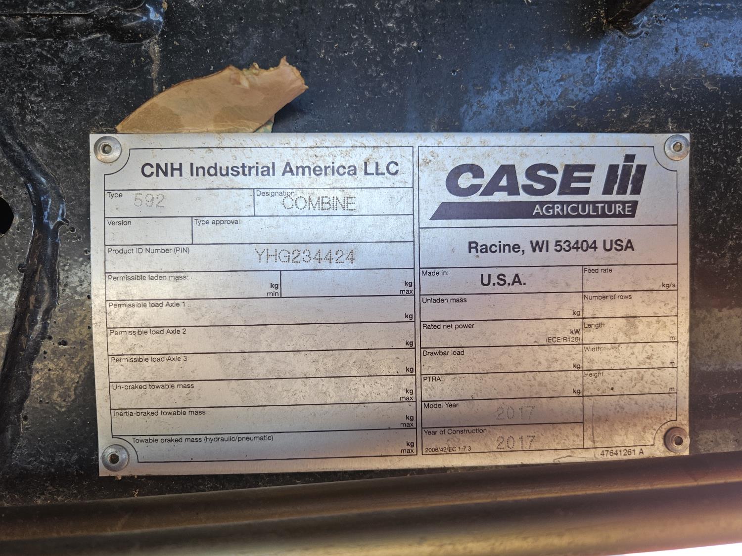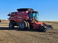 2017 Case IH 3016 15 ft pick-up header, variable speed reel, auto header height, fore & aft, reverser, lateral tilt, rock trap, yield & moisture, chaff spreader, chopper/straw spreader, grain tank extensions, 40 ft auger, premium lighting, A/C, radio, air ride seat, buddy seat, AutoGuidance Steering, AFS 700, Auto Guidance Nav II controller w/ Case 372 GPS system, block heater, axle extensions, HID lighting, 600/70R28 front tires, duals, 520/85R42 rear tires