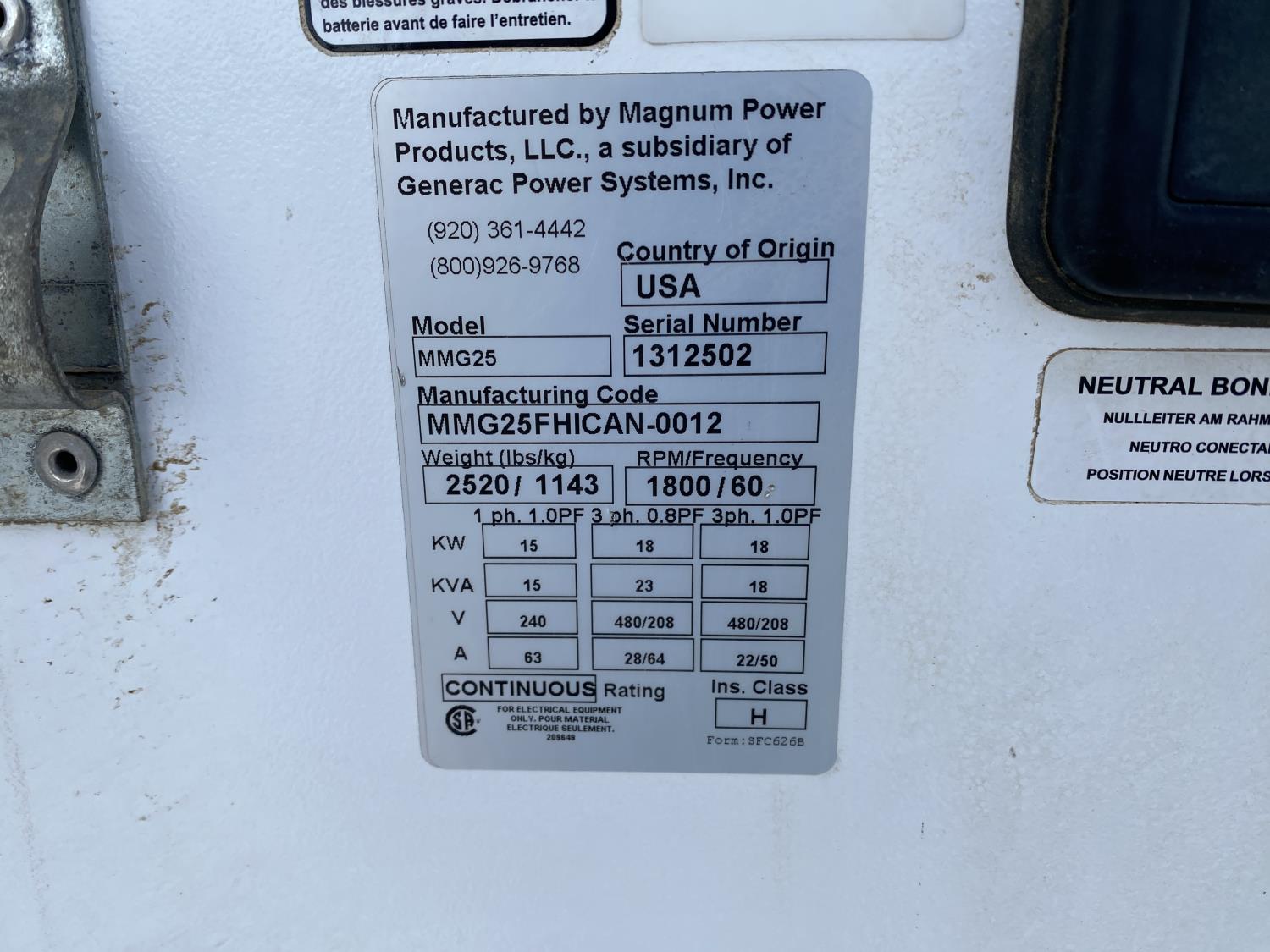 120 Magnum MMG25 18 Kw Towable Generator