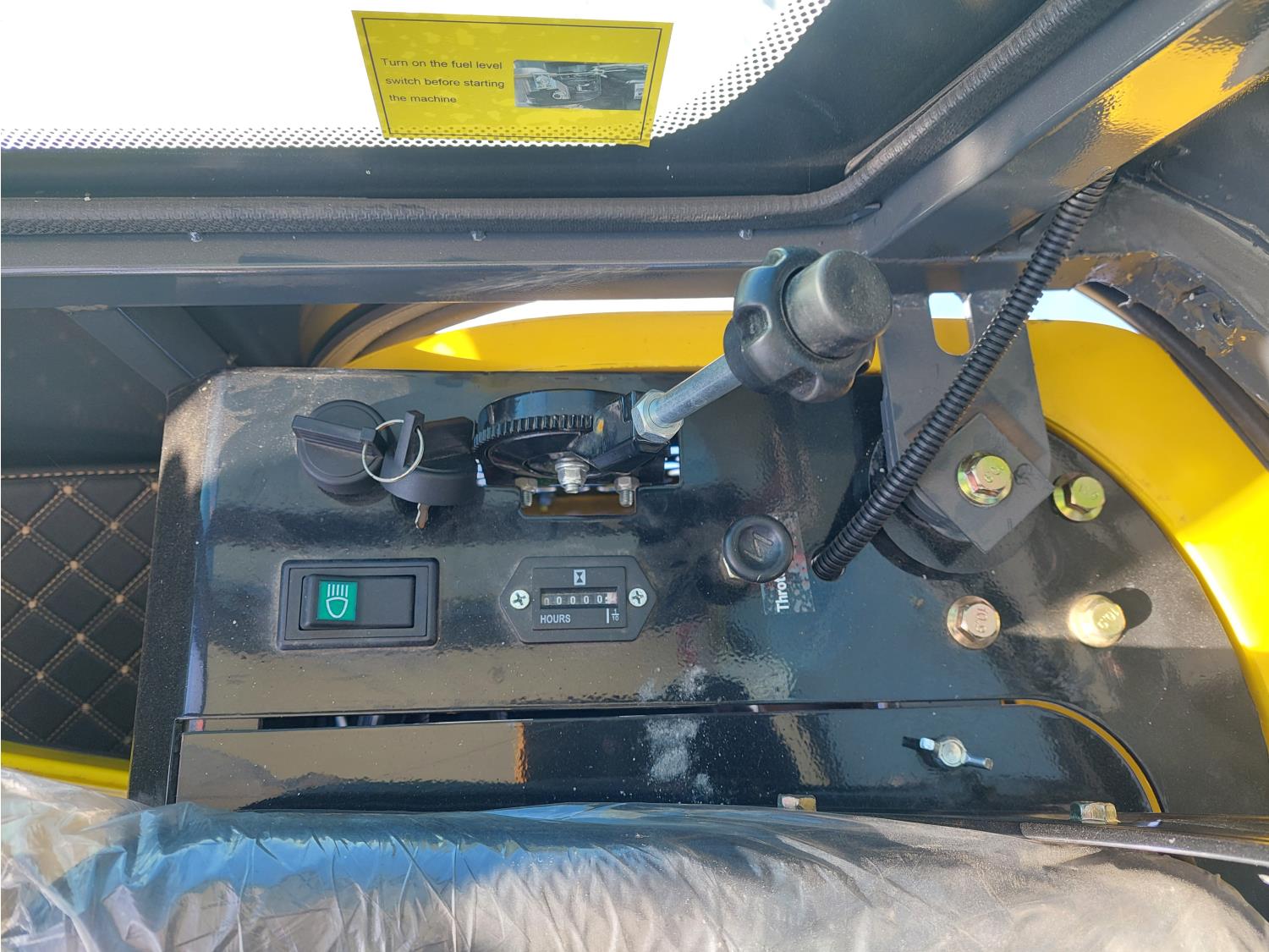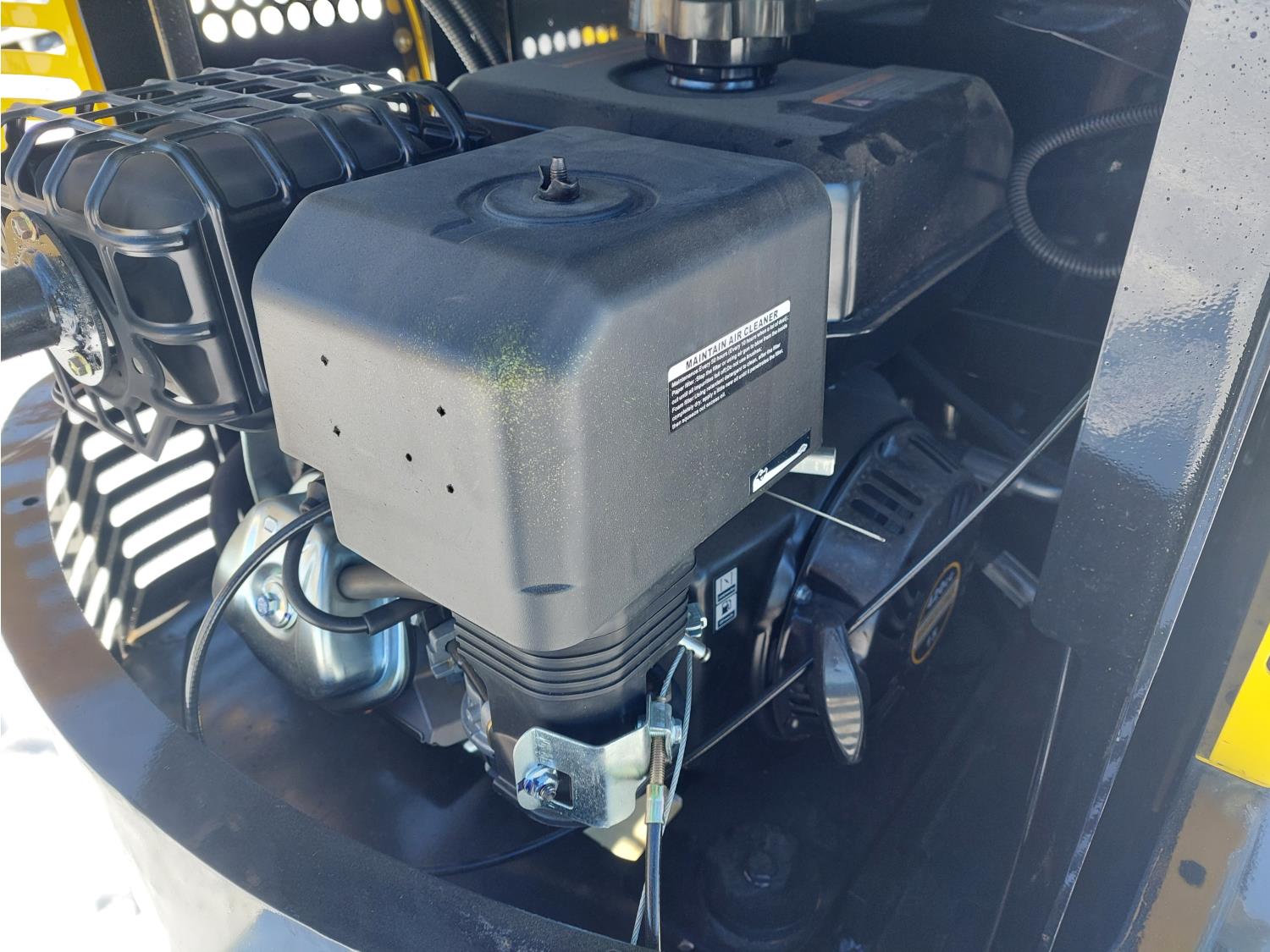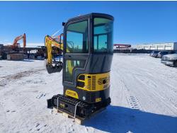 Enclosed cab, 15 HP gas engine, 16 inch dig bucket, manual thumb, 2 Ft 4 inch stick, 39 inch backfill blade, 7 inch rubber tracks, 7 inch track pads