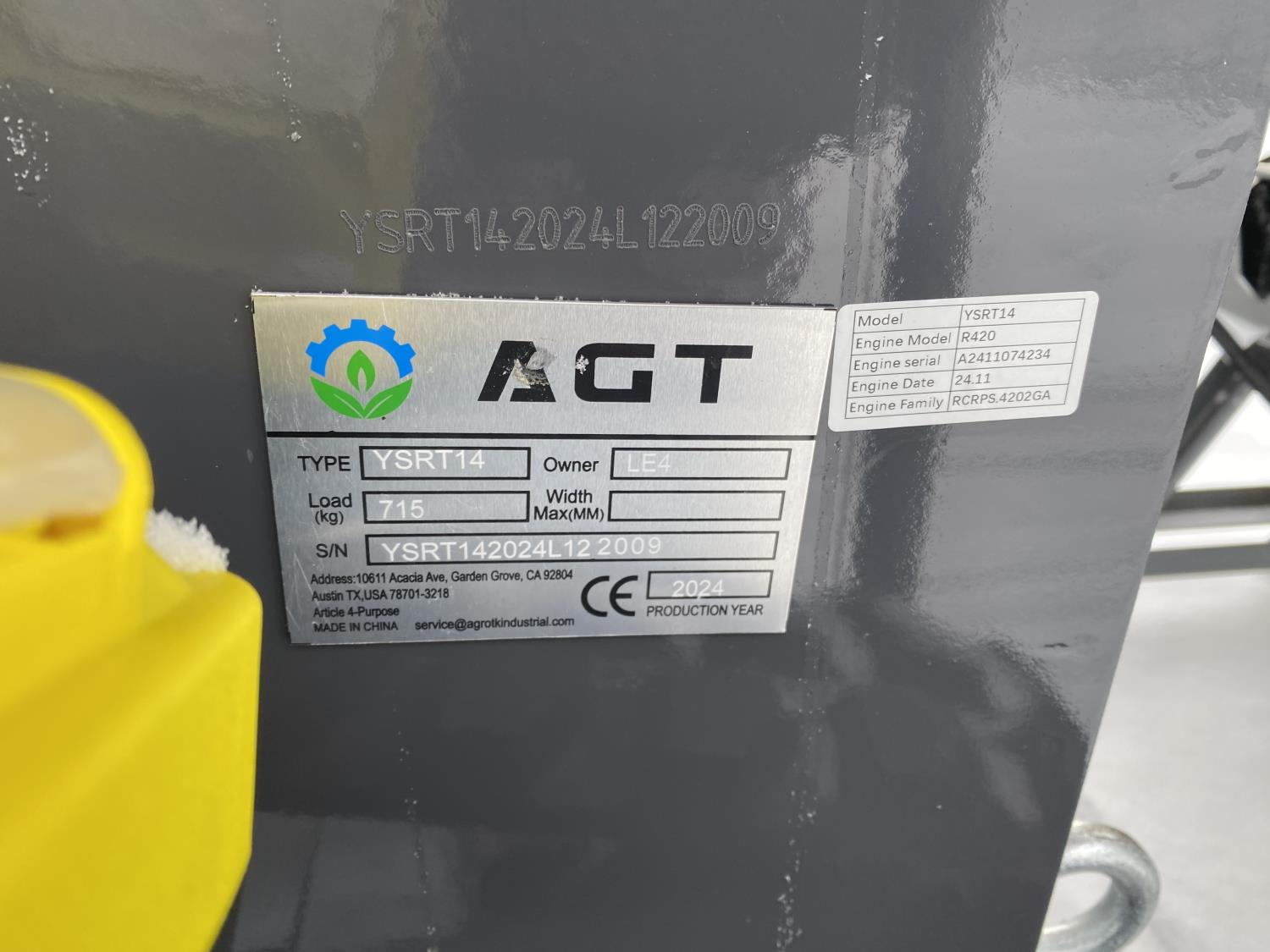314 2024 AGT YSRT14 Mini Stand On Skid Steer (Unused)