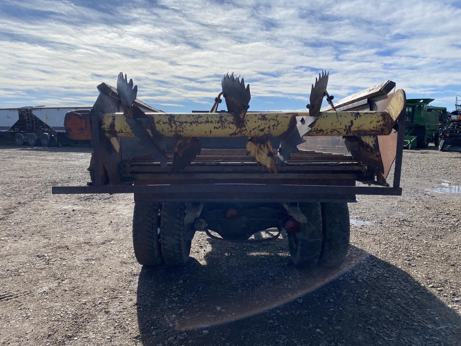 540 PTO, 14 ft box, single horizontal beater, wood floor, single floor chain unloader, 9.00-20 tires