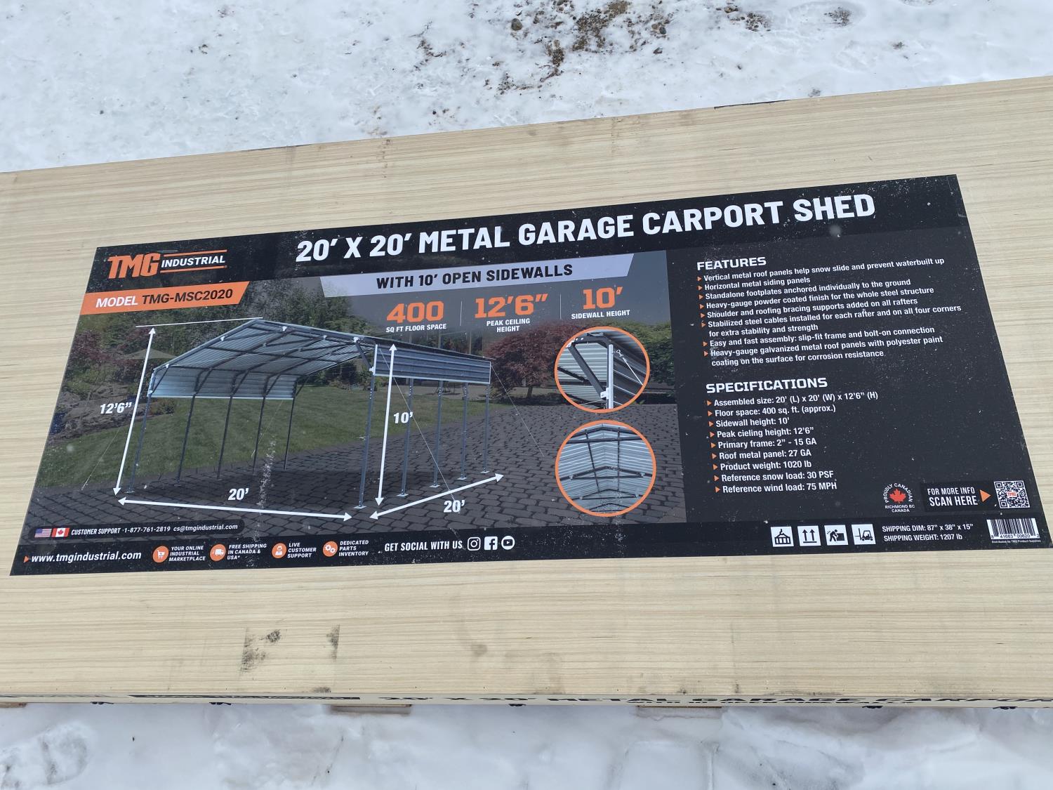 19 TMG Industrial TMG-MSC2020 20 Ft X 20 Ft Metal Carport (Unused)
