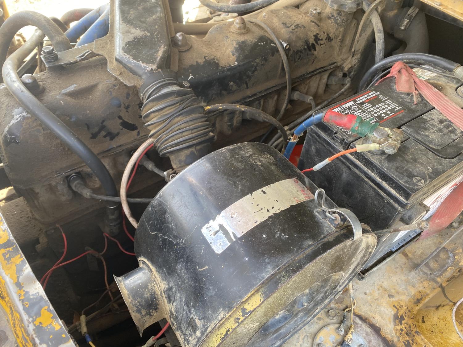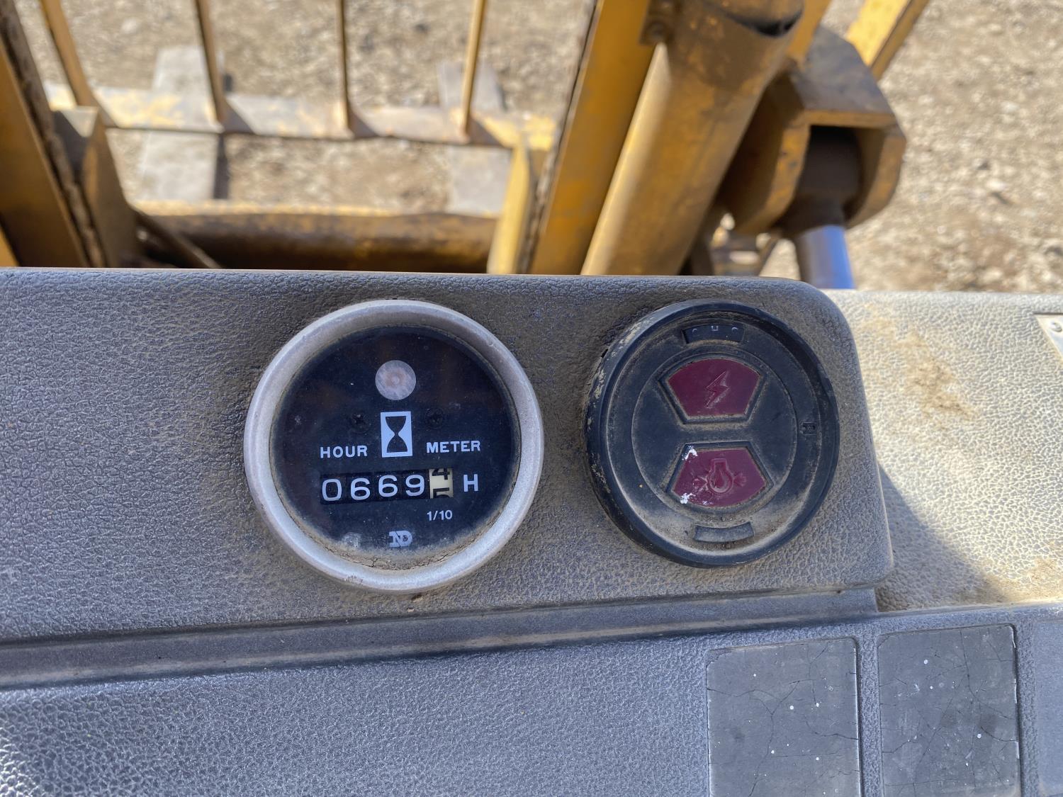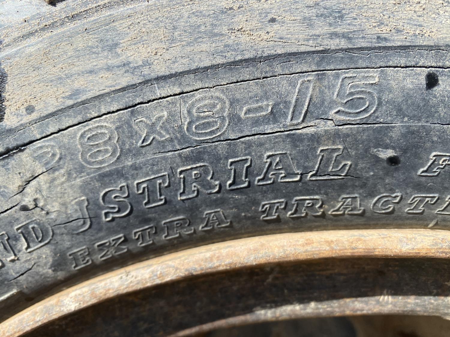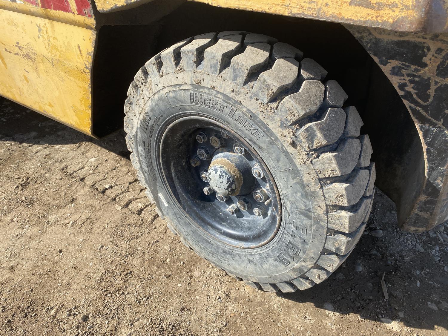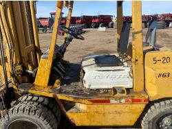 Open station with ROPS, gas, hydro transmission, left hand reverser, 8 ft 2 inch lowered mast height, 12 ft 1 in max lift height, 1 mast stages, 44 inch pallet forks, side shift, 28X8-15 front tires, 7-12 rear tires