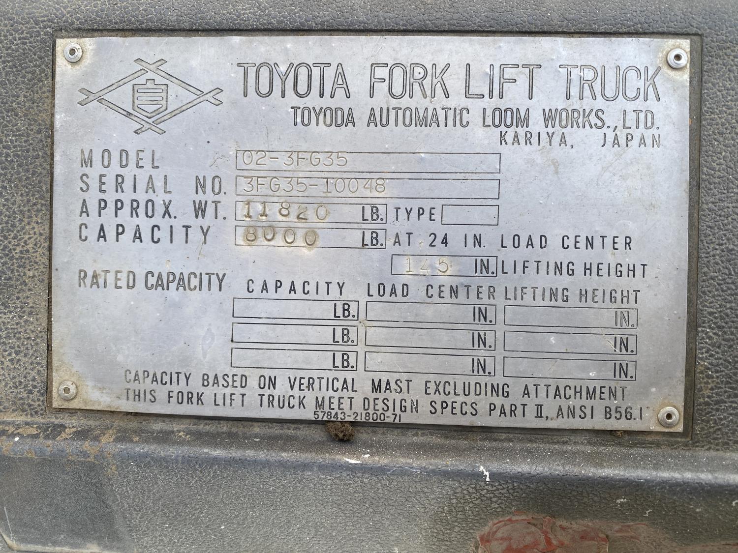 266 Toyota 02-3FG35 8000 lb Rough Terrain Forklift