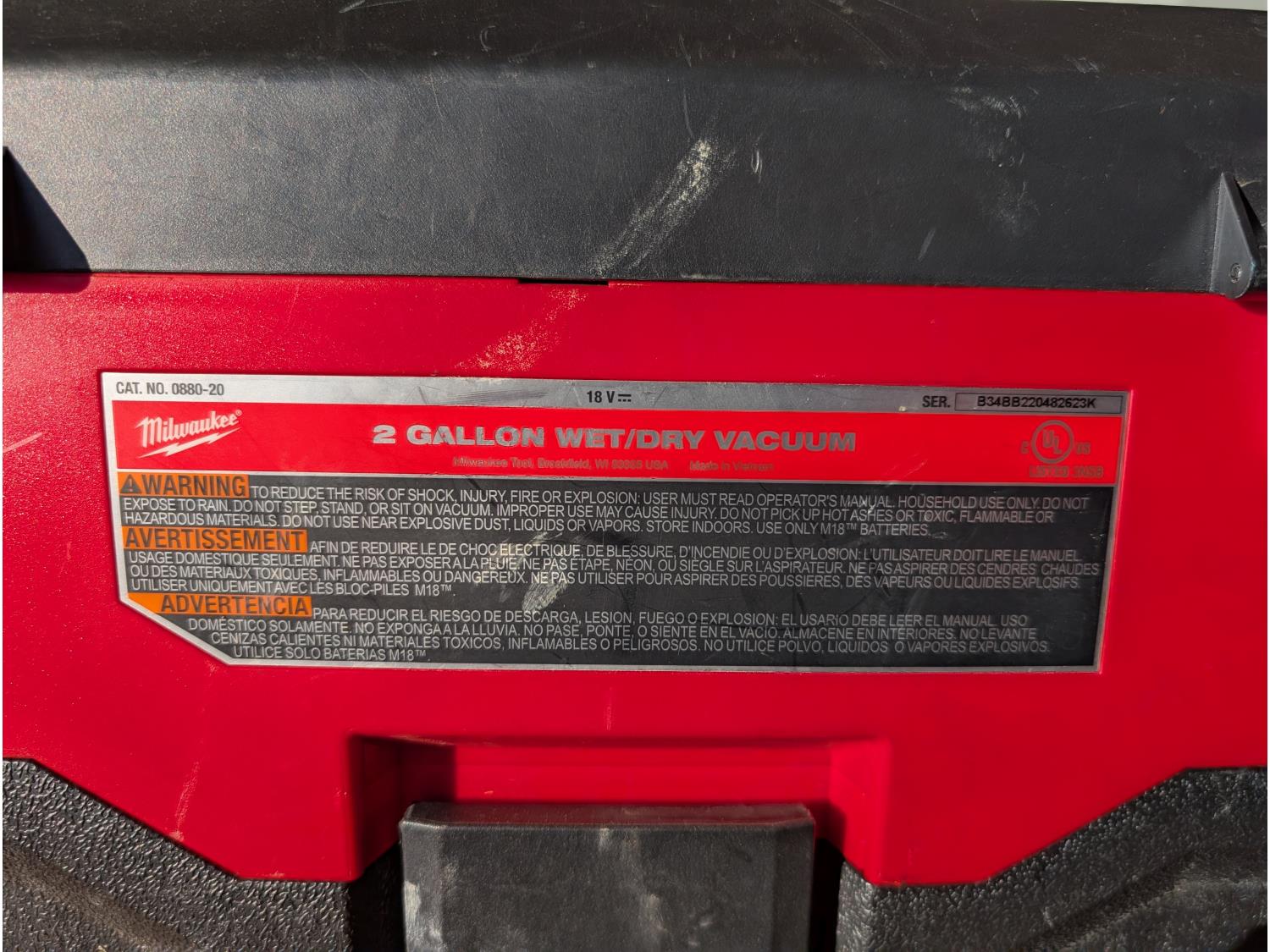 1179 Milwaukee M18 Portable 2 Gallon Wet/Dry Vaccum