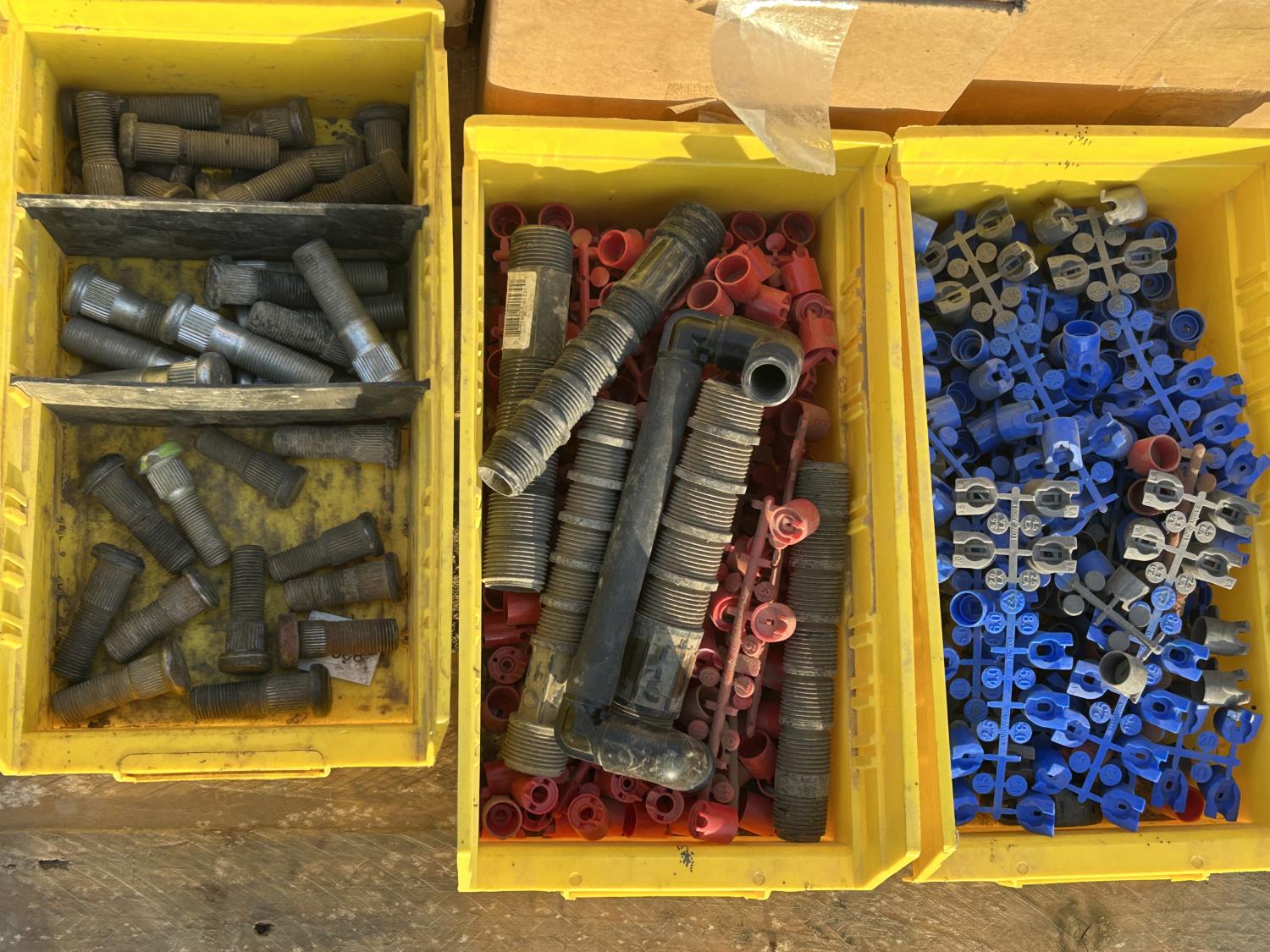 (10) hose clamp boxes, miscellaneous. bolts and fittings