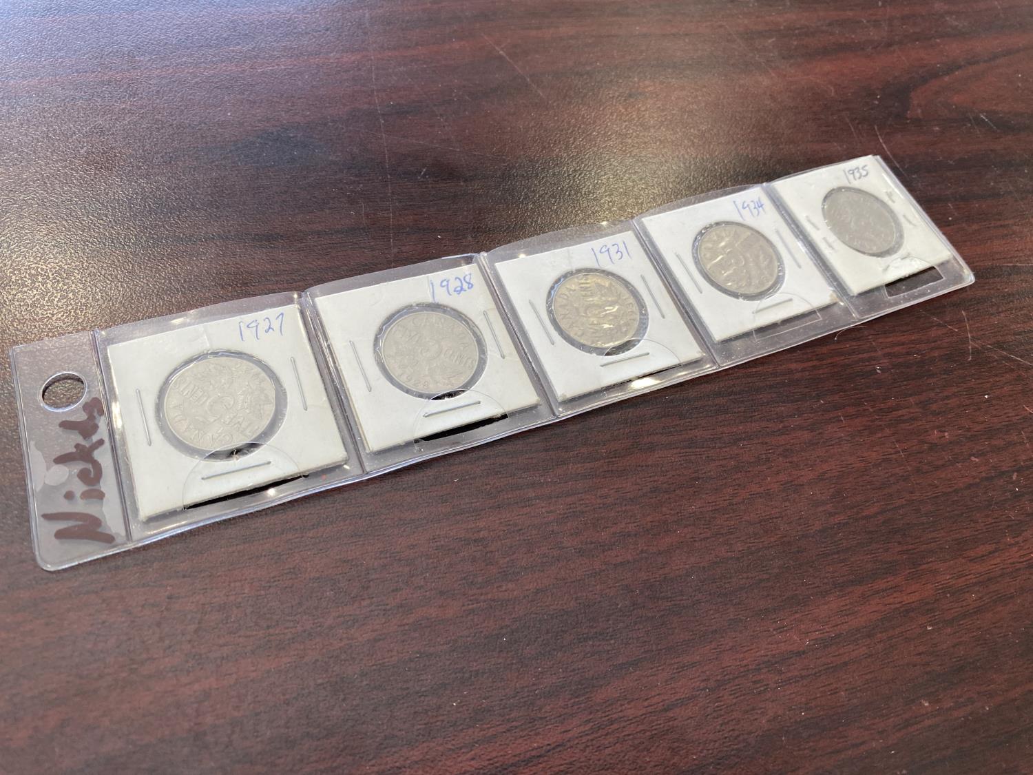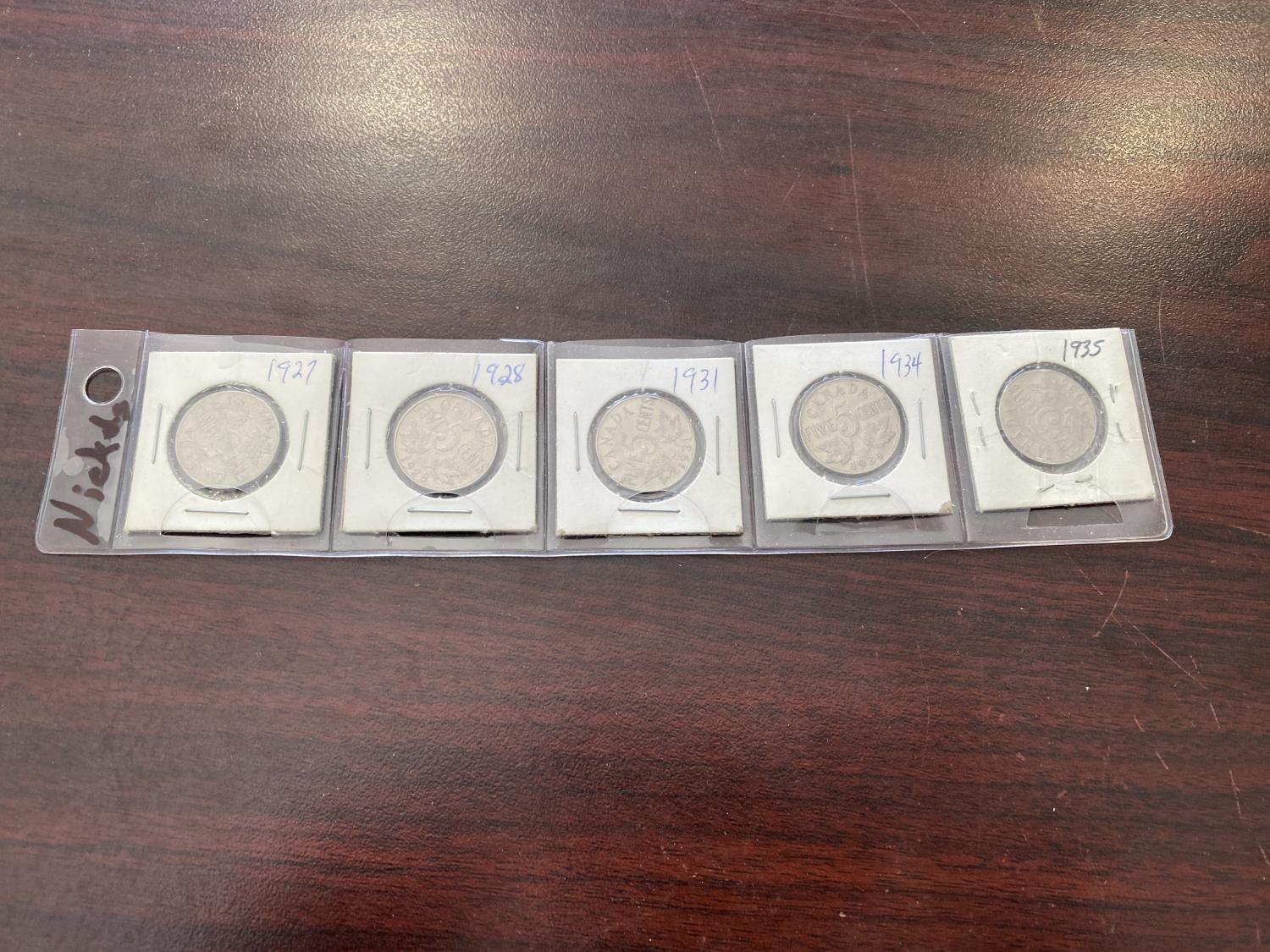 1559 Qty of (5) Canadian Collectible Nickels 1927-1935
