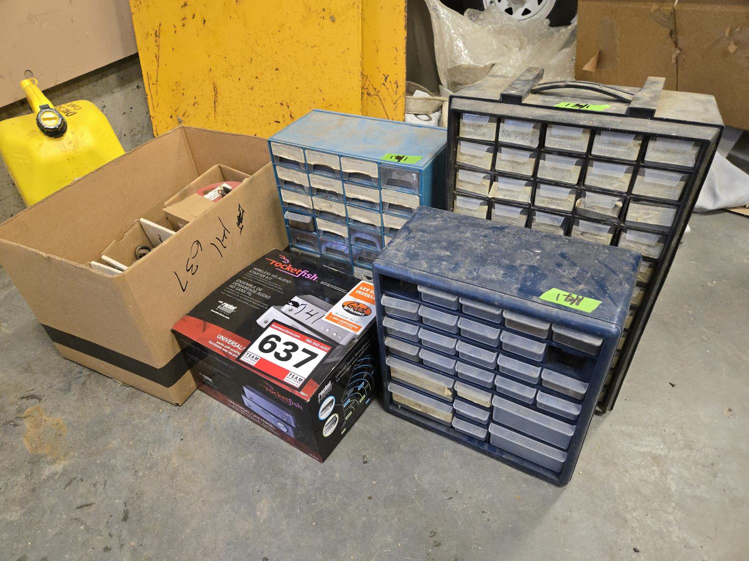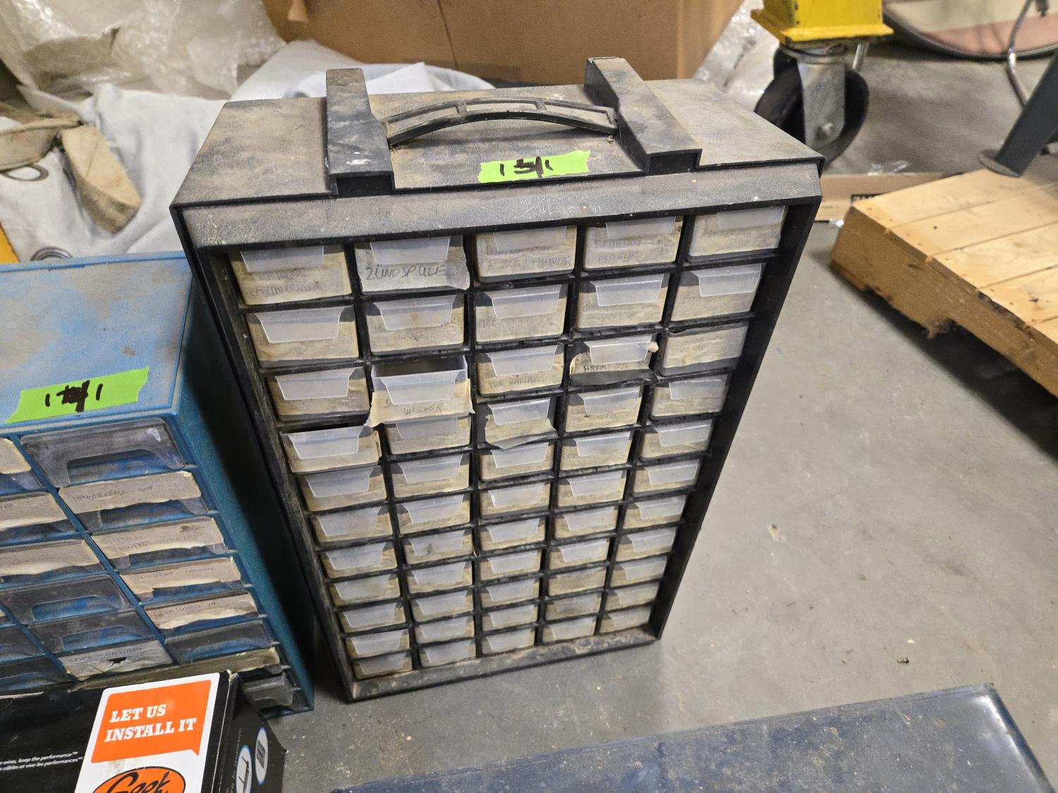 637 (3) Small Parts Cabinets, Roll of Vacuum Hose & Rubber Protected Straps