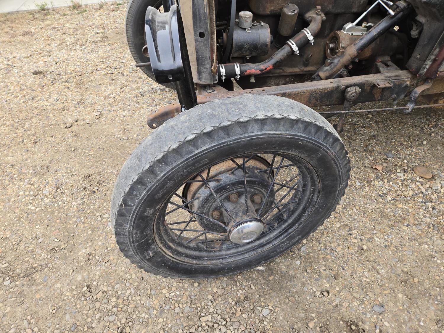 4 cylinder gas engine, 3 speed transmission, 4.75/5.00-19 tires