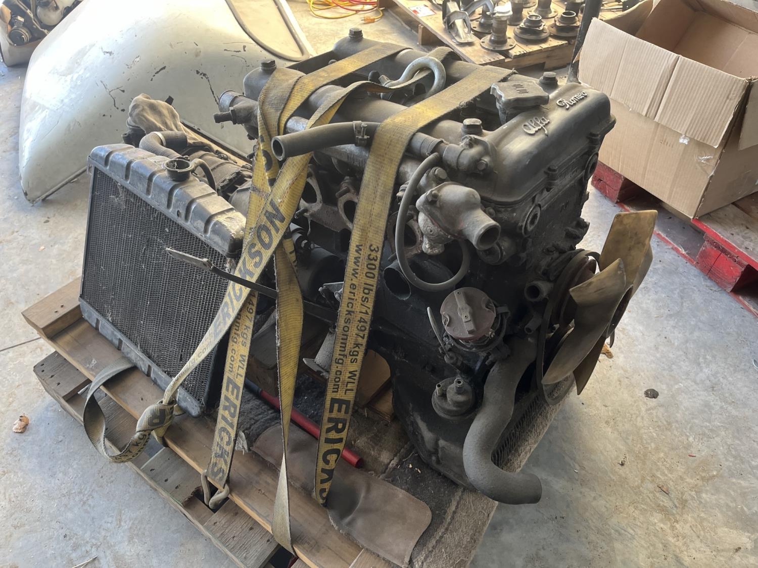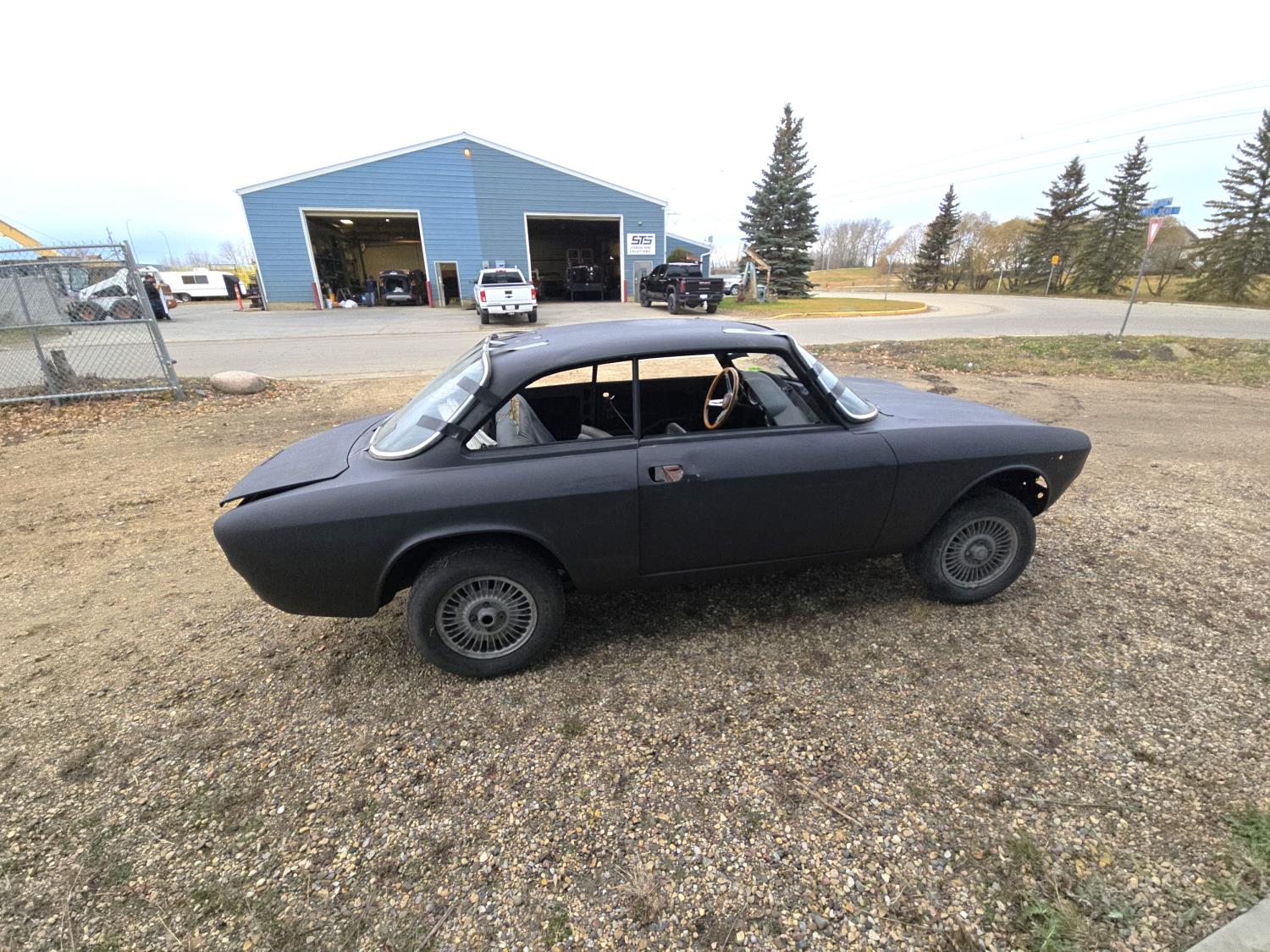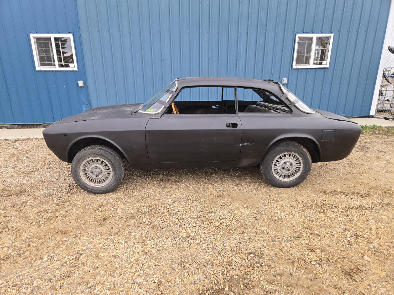Built from GT 105 body and chassis. Additional auction lots include the complete vehicle assembly components. 2.0 L Alfa Romeo GTV motor and transmission. Rolling chassis, body, and interior. Clean glass. Lights, 185/70R14 tires