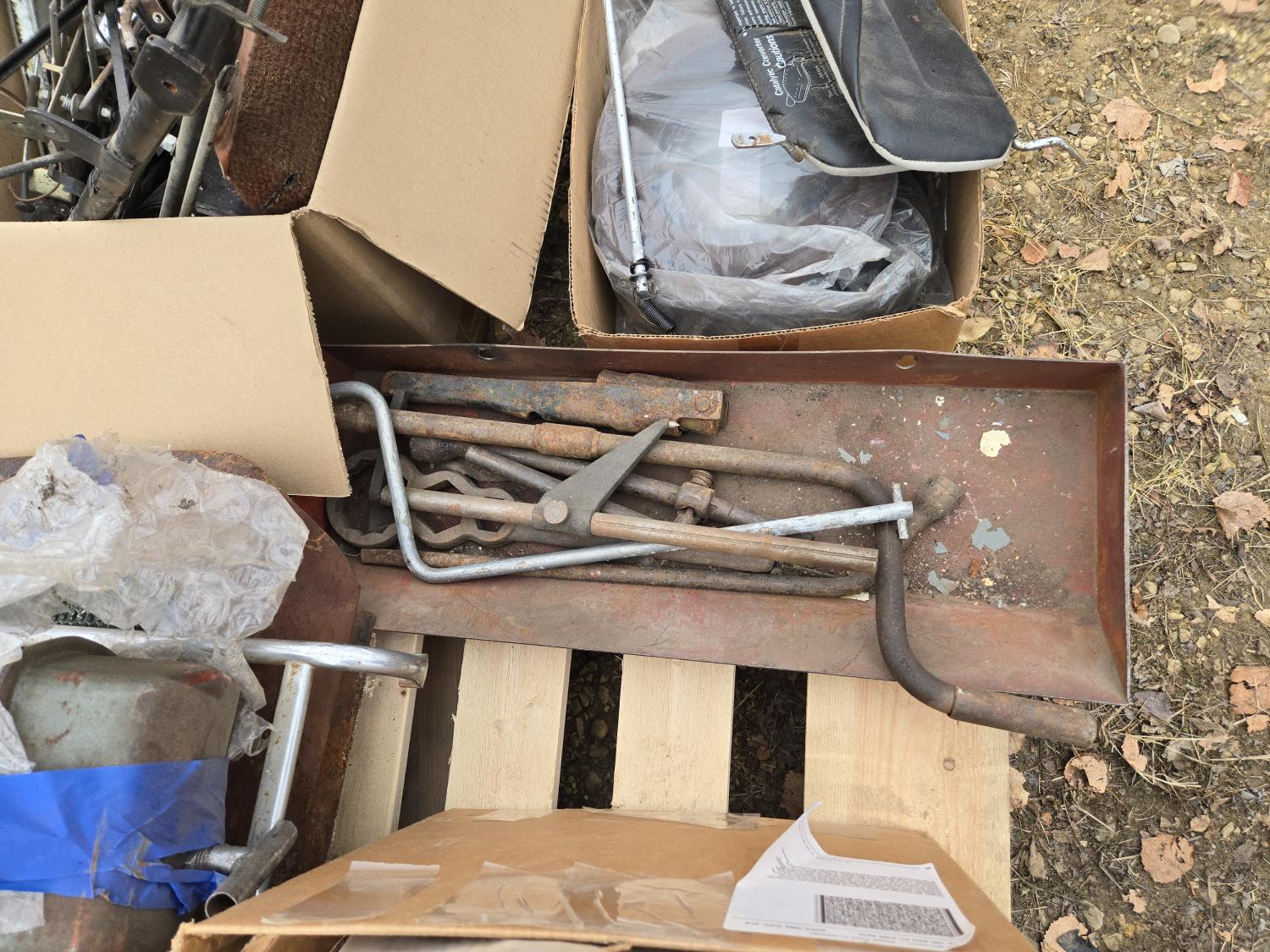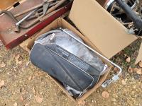 emblems, Chev rad, Austin valve cover, miscellaneous parts and tools