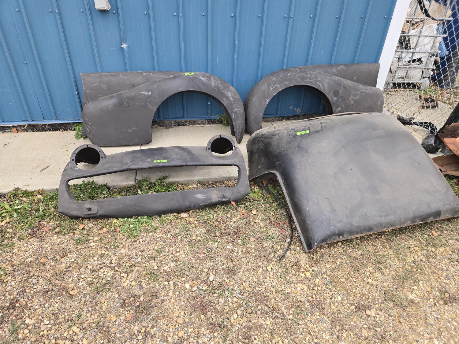 Front and rear fenders, fiberglass top, front grill, inner fenders, doors, hood