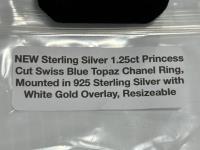 5339 1.25Ct Princess Cut Swiss Blue Topaz Chanel Ring, Resizable (Unused)