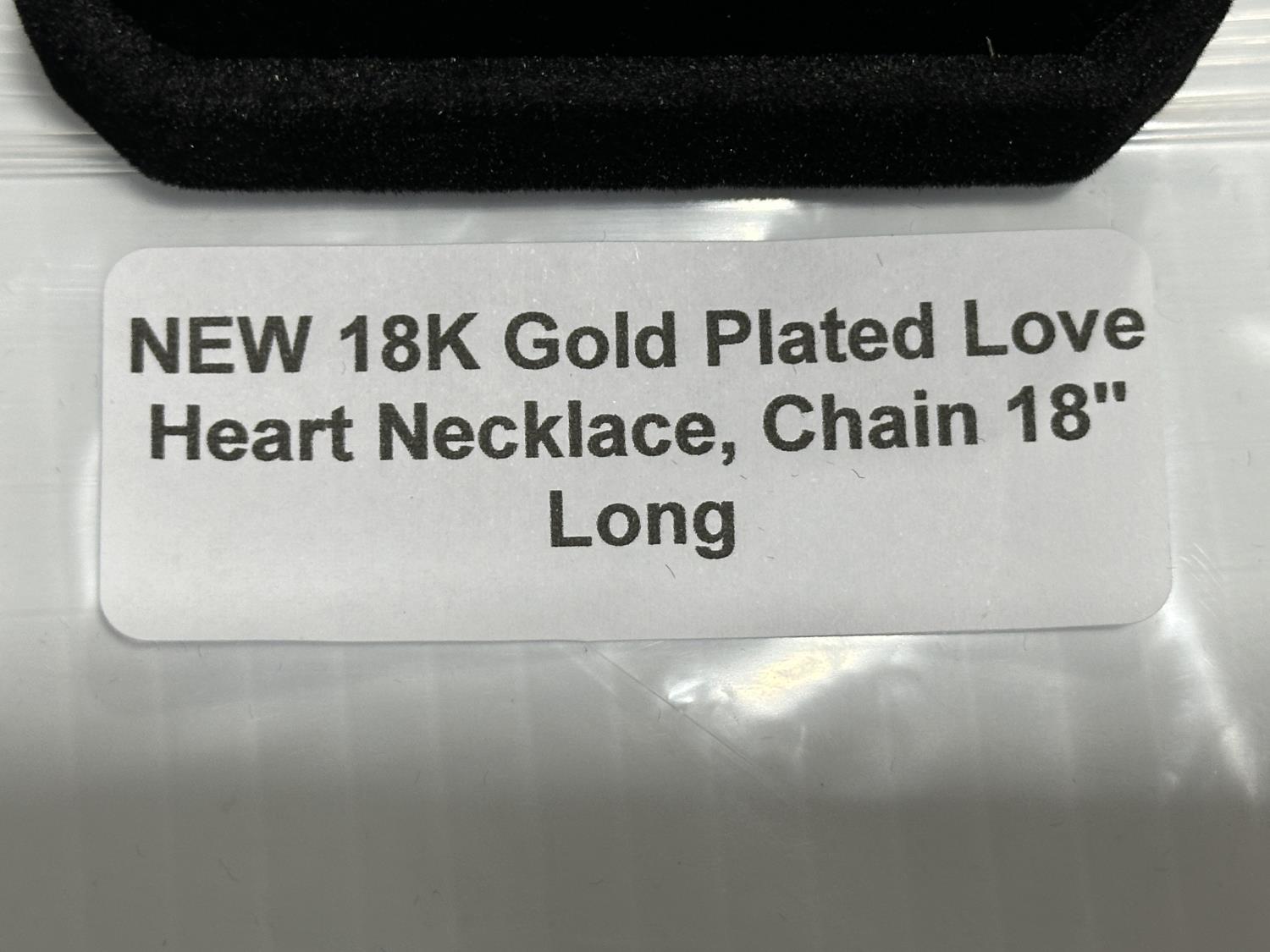 5345 18K Gold Plated Love Heart Necklace 18 Inch Long Chain (Unused)