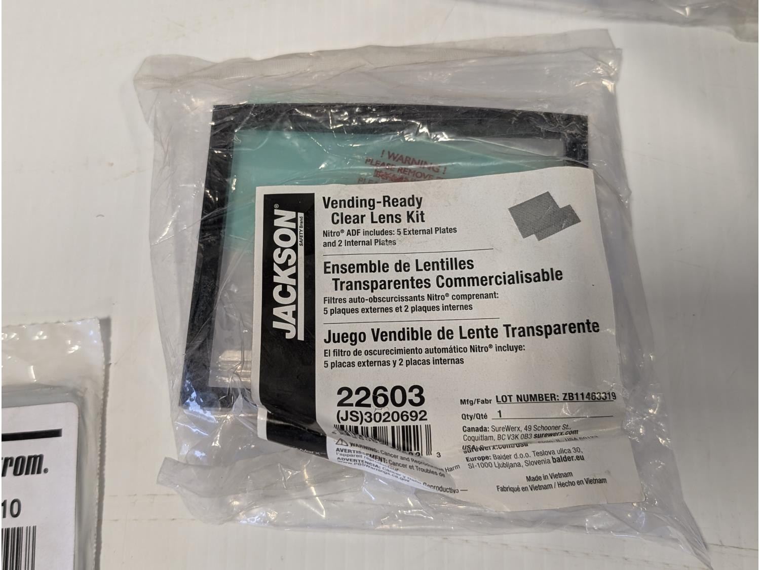 qty of face masks, splash protection face shield assemblies, Sellstrom protective googles, jackson clear lens kits, (2) 21 inch LED traffic batons