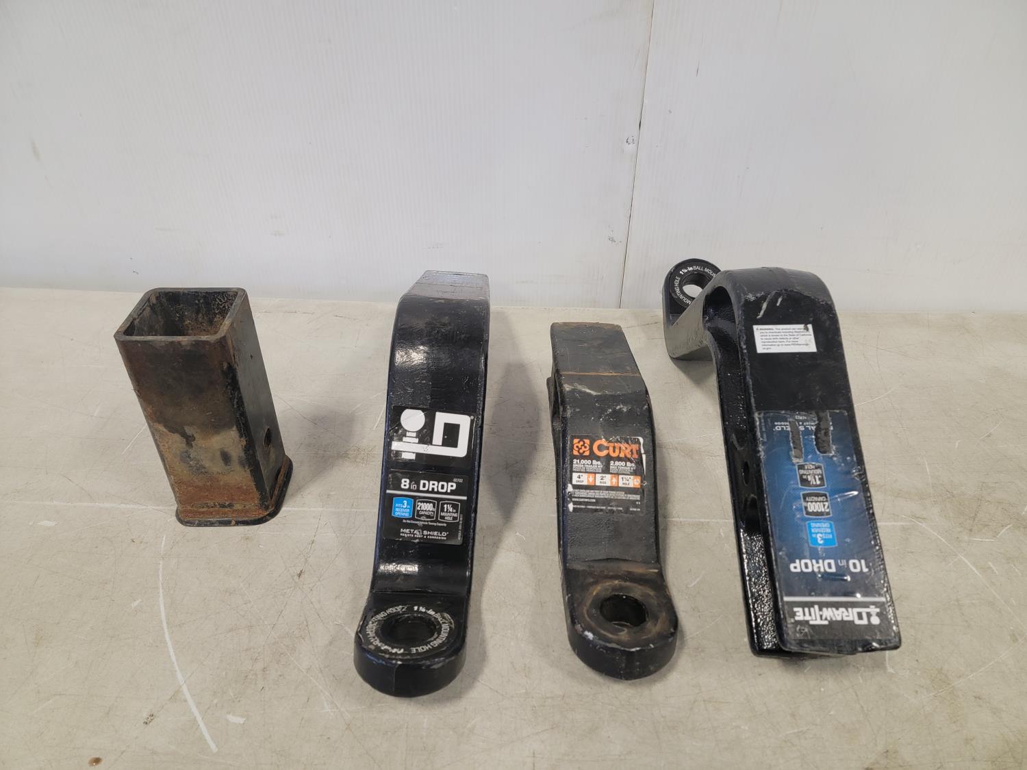5TH wheel trailer hitch rail adaptor 5000 lb max pin weight, fits Ford truck, (3) 3 inch hitch receivers- 10 inch drop, 4 inch drop, 8 inch drop (1) 3 inch to 2.5 inch hitch adaptor