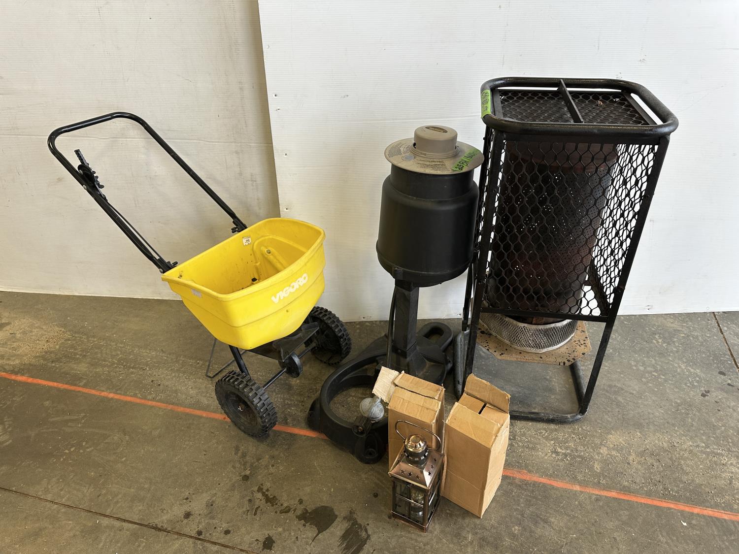 5620 Vigoro Spreader, Skeeter Vac, (3) Oil Lanterns, Propane Heater