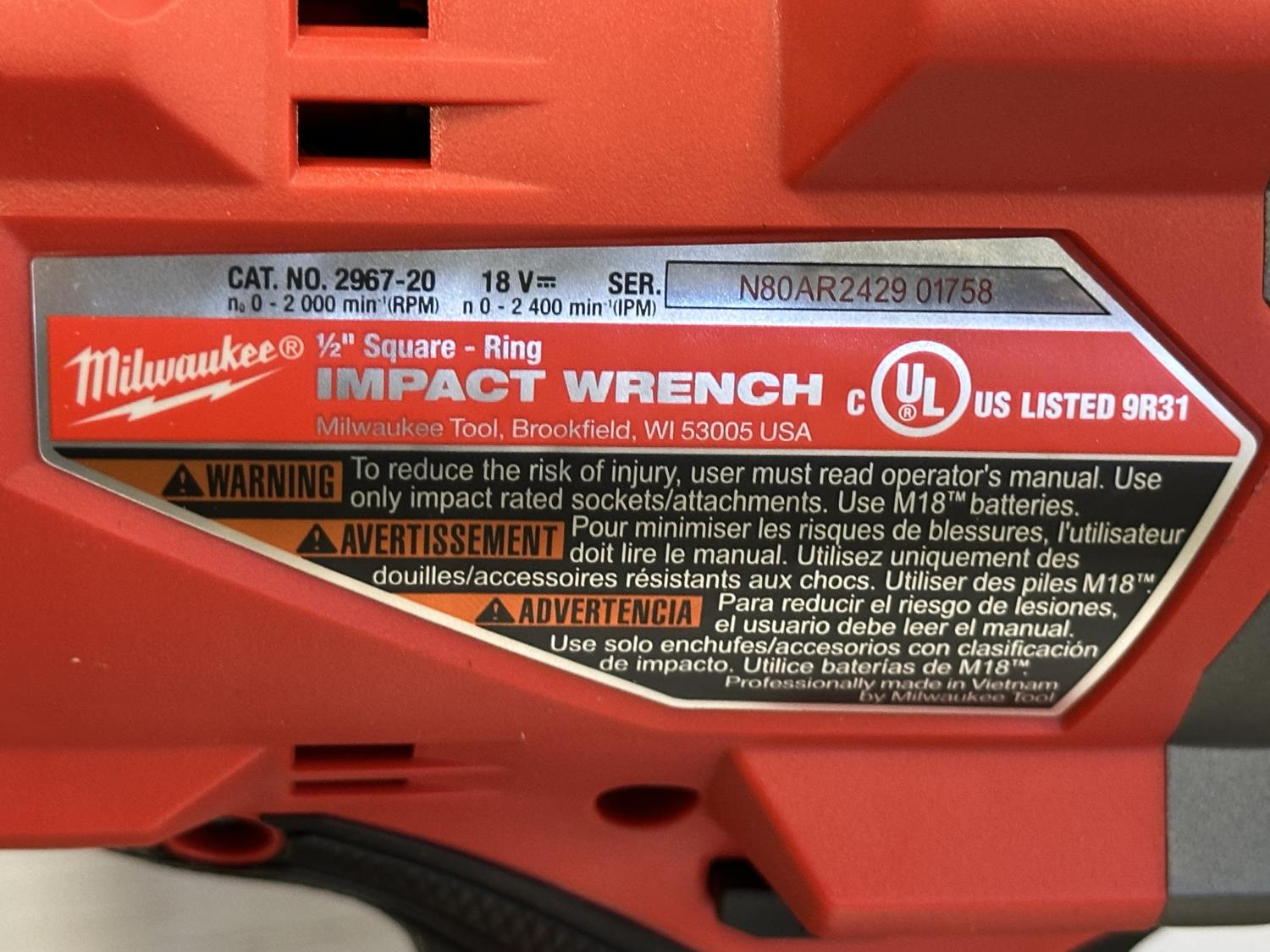 5562 Milwaukee M18 Fuel 1/2 Inch High Torque Impact Wrench (Unused)