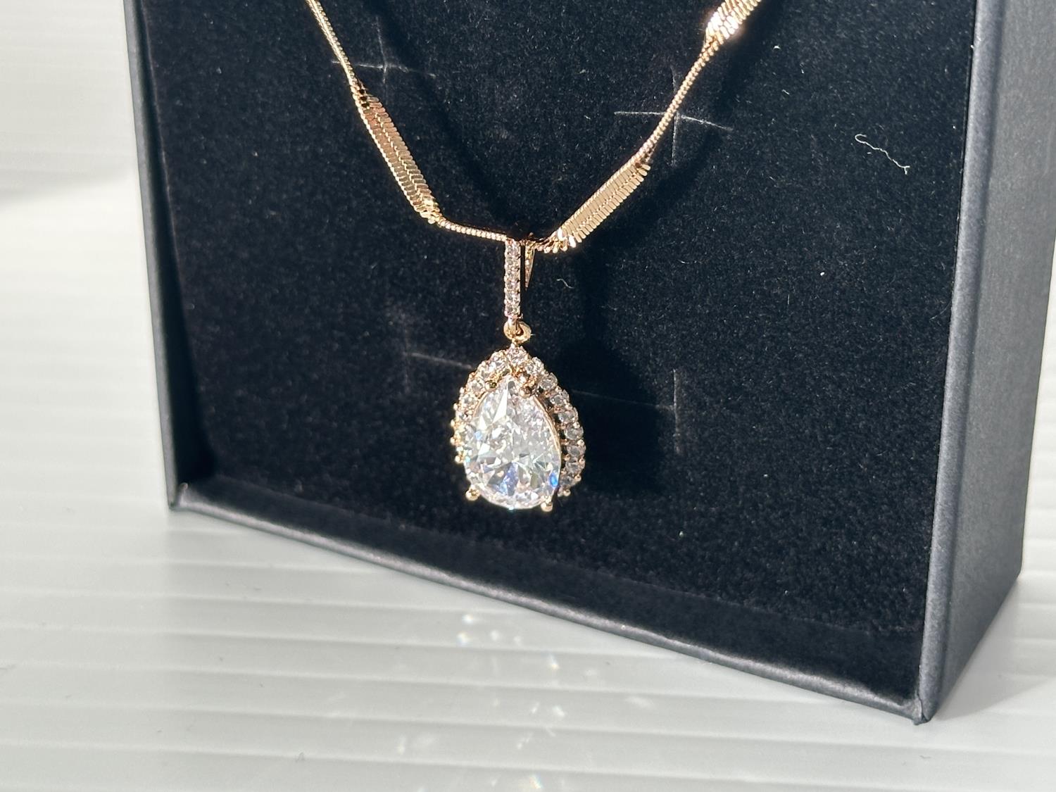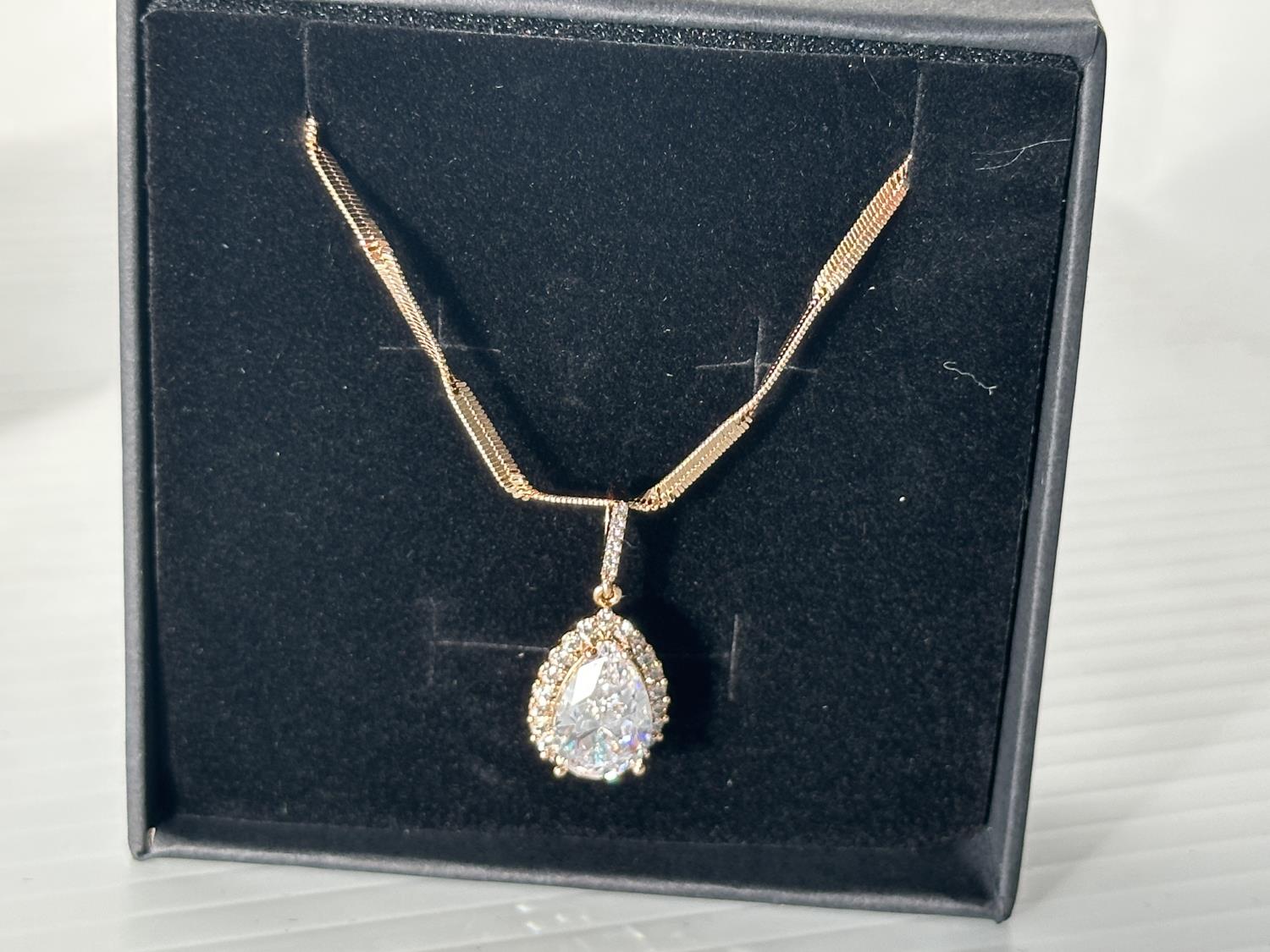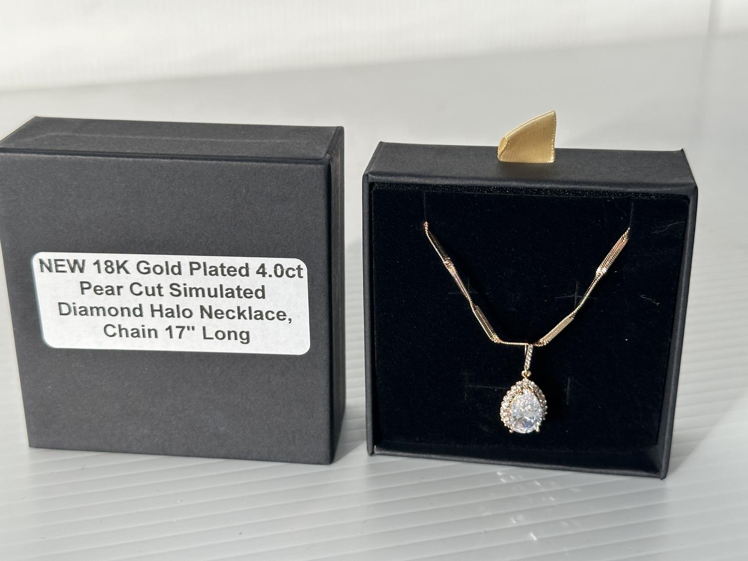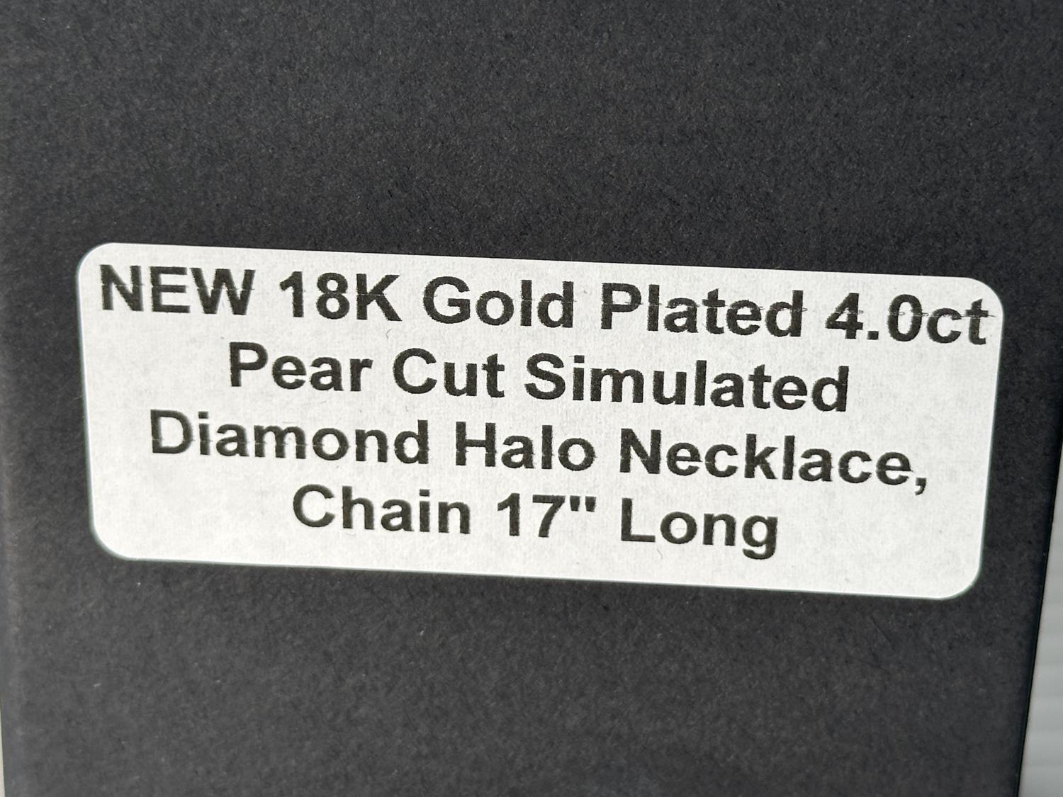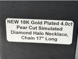 5012 Smartlife 18K Gold Plated 4.0 Ct Pear Cut Simulated Diamond Halo Necklace (Unused)