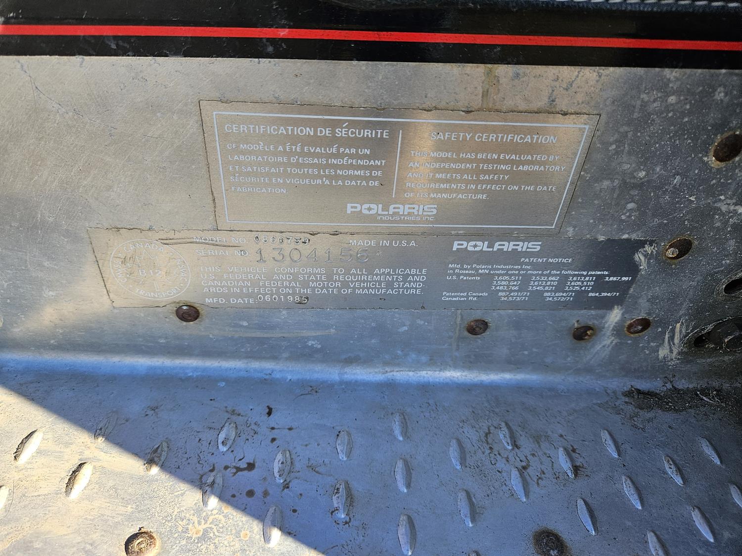 5625 1985 Polaris 400 Indy Snowmobile (Inoperable)