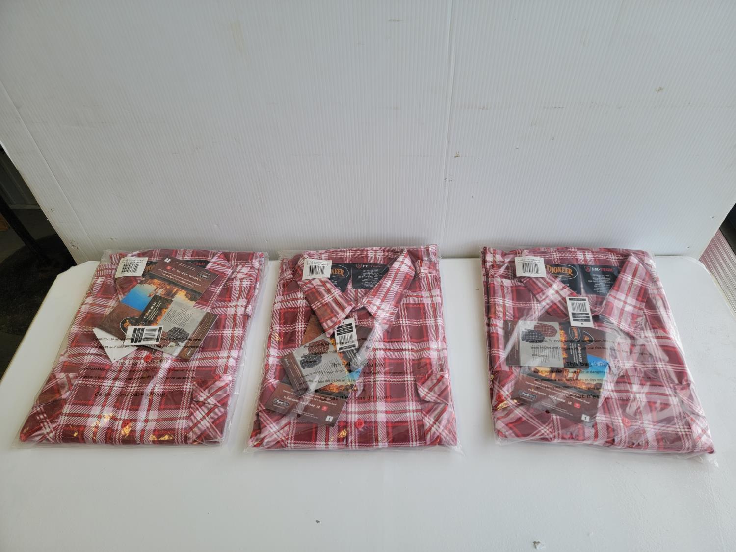 Shirts size 3XL, (3) raincoats 3XL, (1) raincoat 4XL