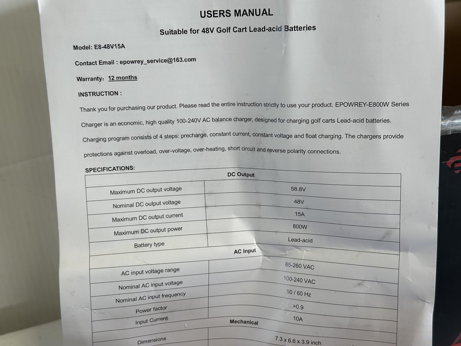 5275 48V 15 Amp Golf Cart Charger