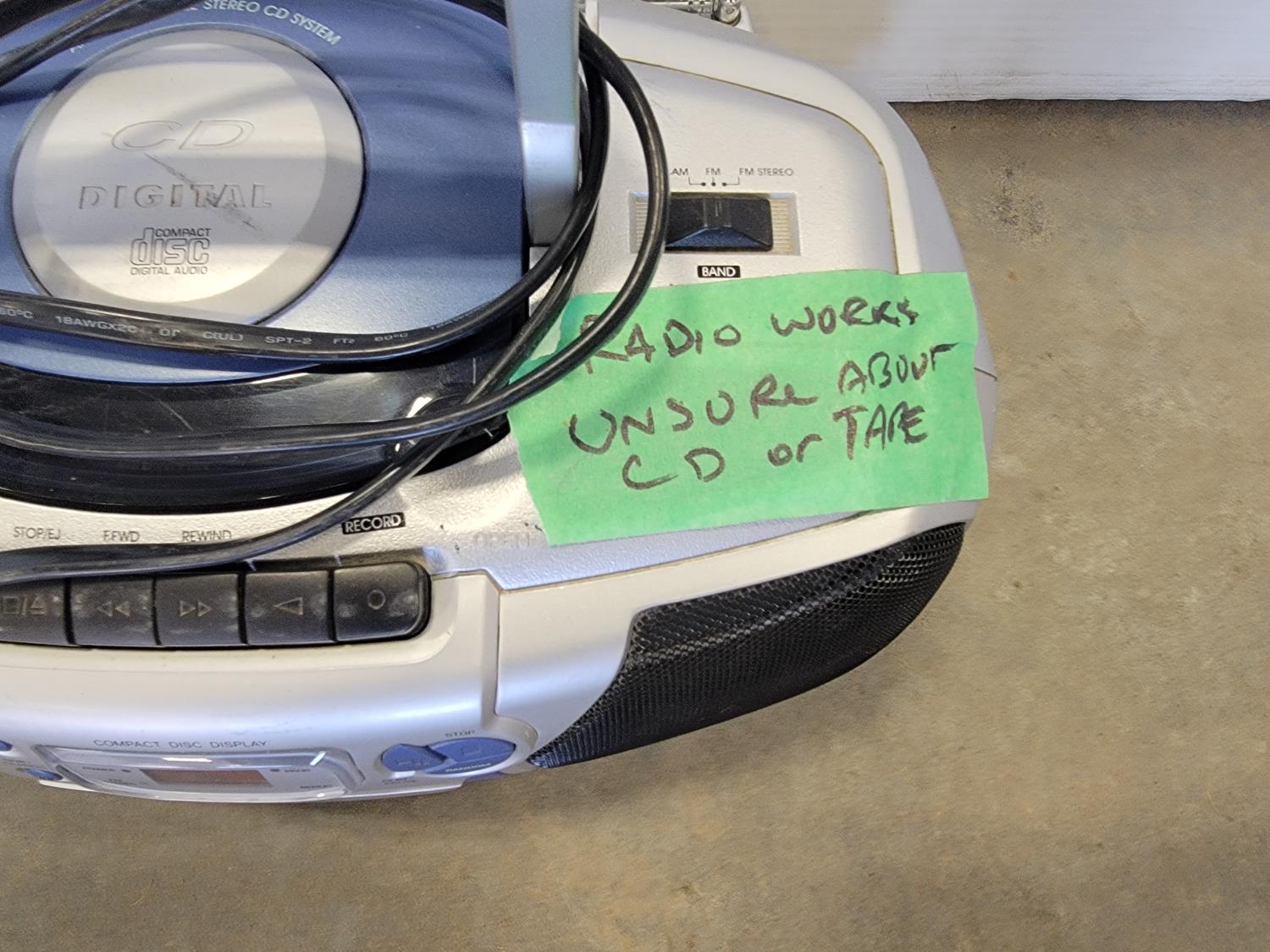Christmas tree stand, office chair, radio and umbrella